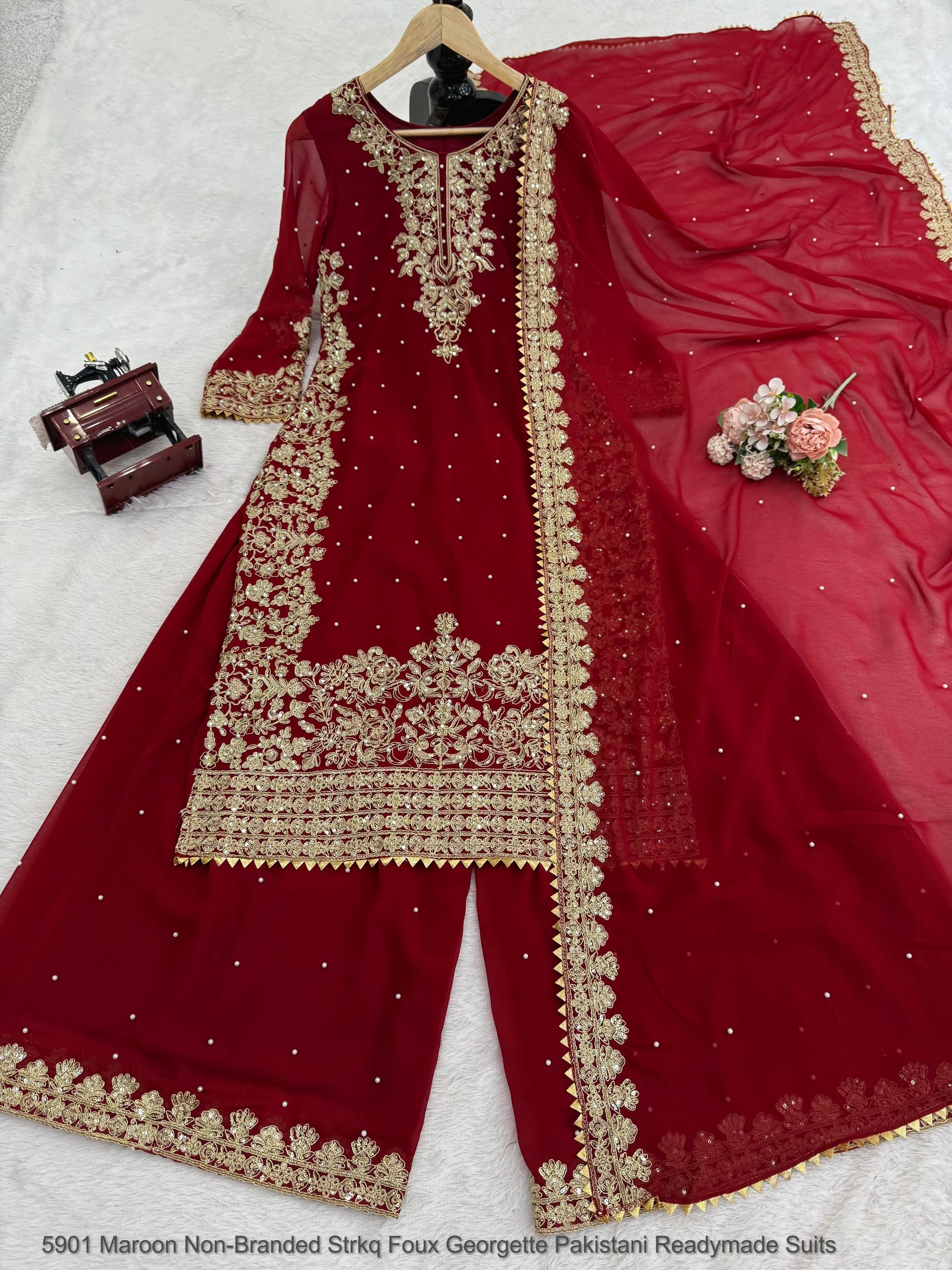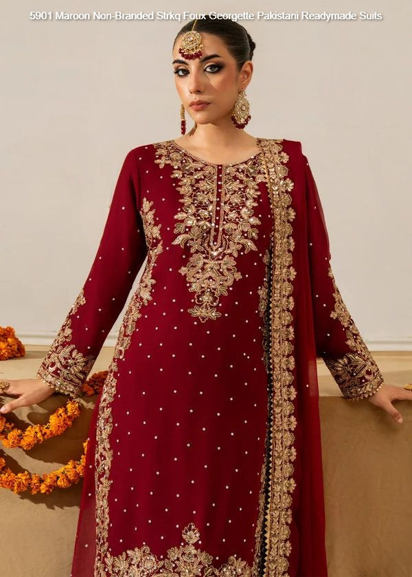 5901 Maroon Non-Branded Strkq Foux Georgette Pakistani Readymade Suits