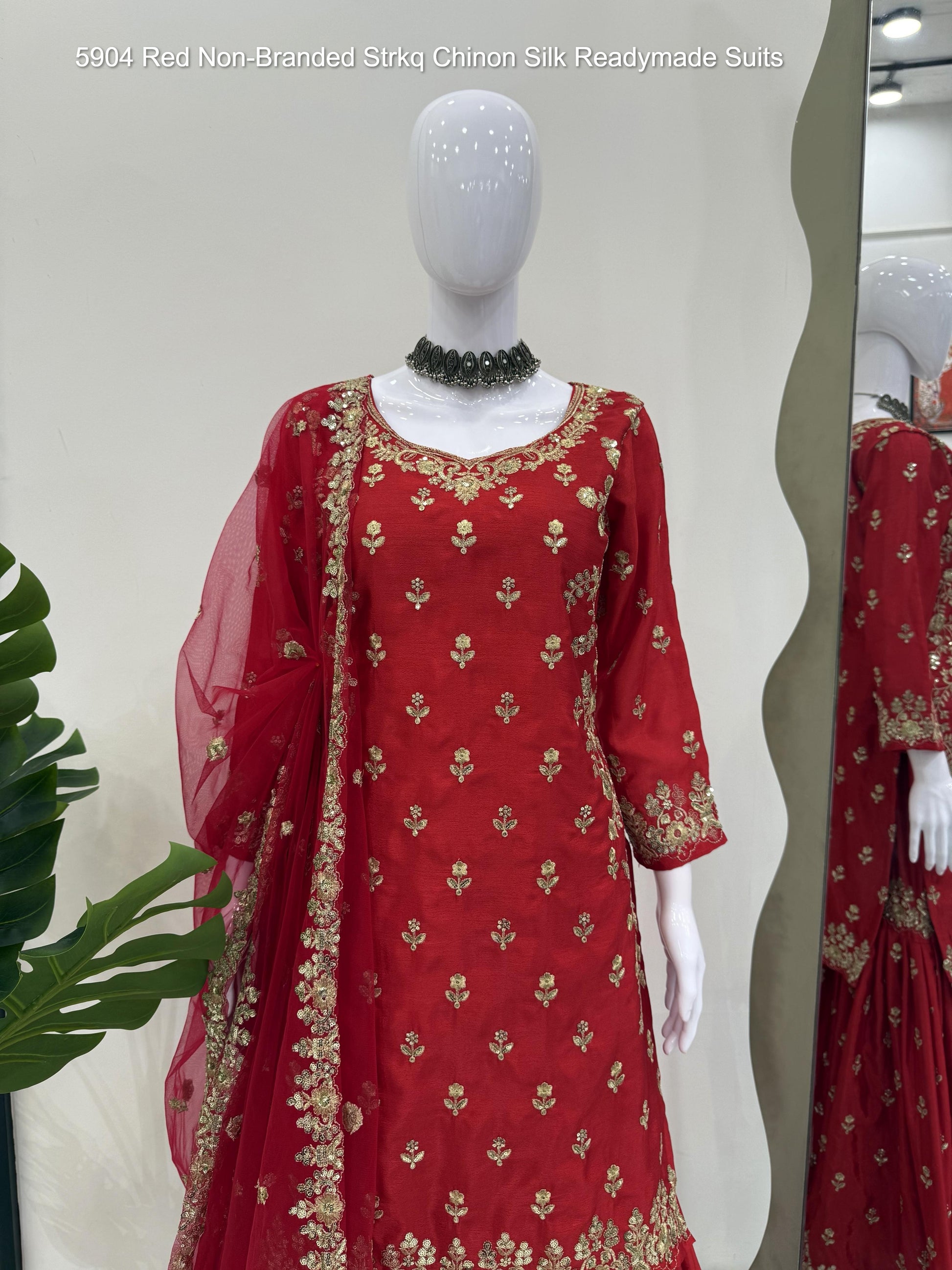 5904 Red Non-Branded Strkq Chinon Silk Readymade Suits
