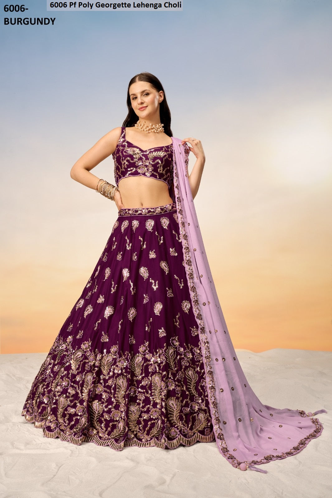 6006 Burgundy Pf Poly Georgette Lehenga Choli