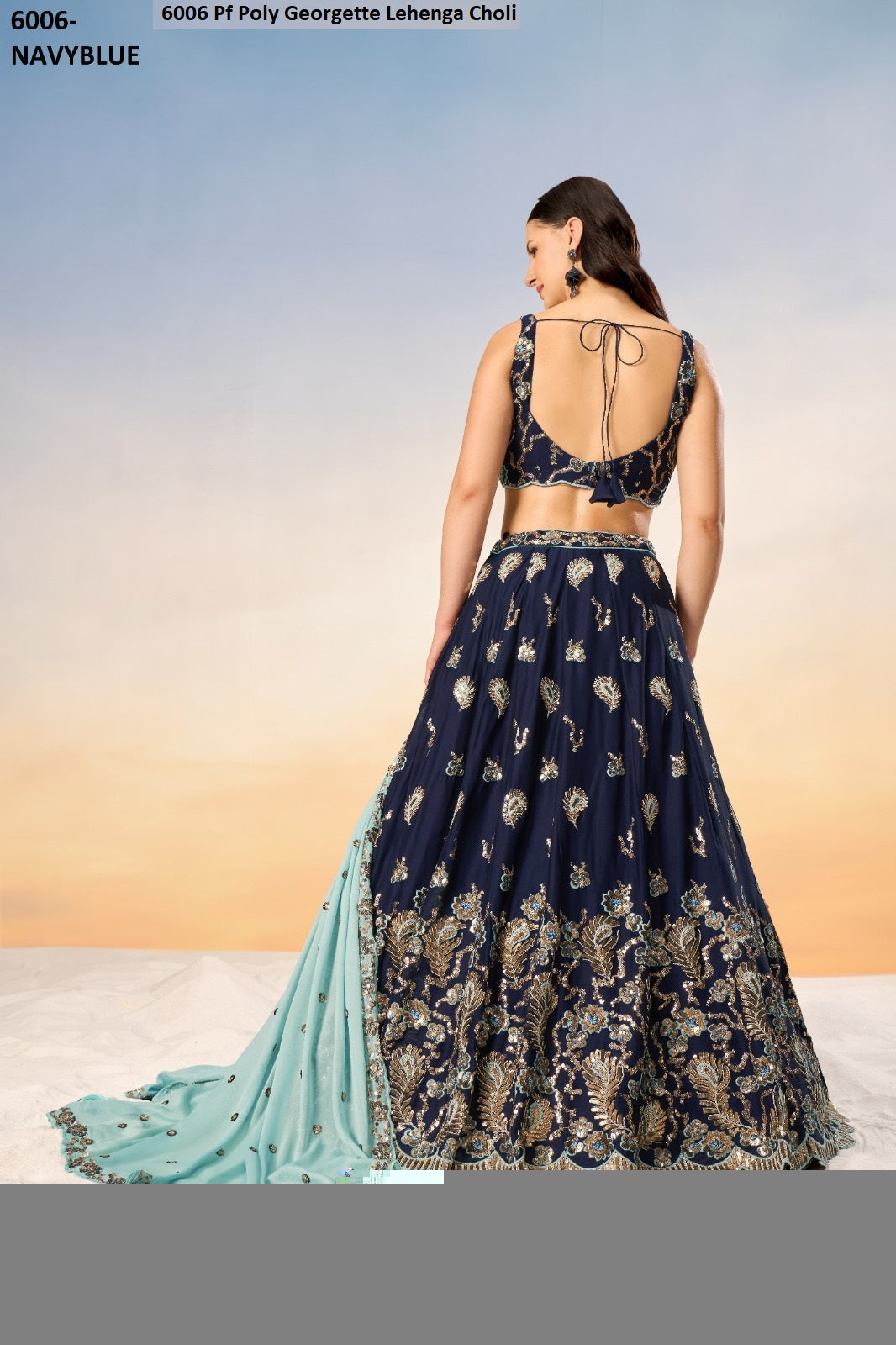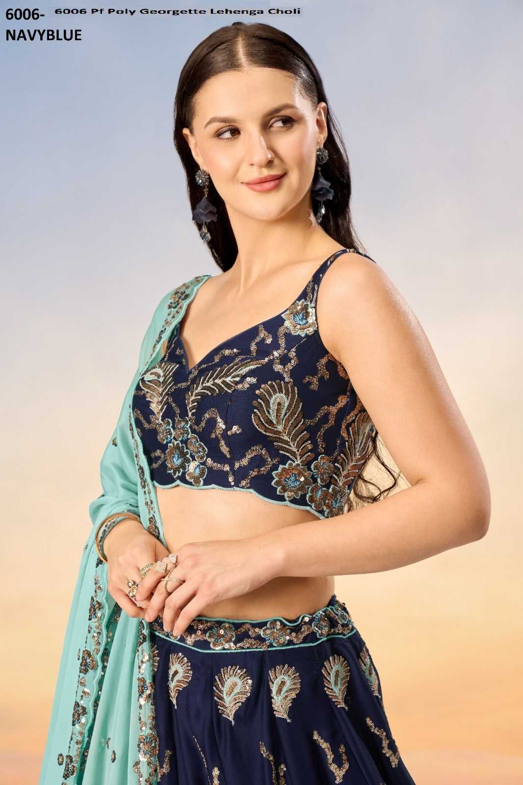 6006 Navy Blue Pf Poly Georgette Lehenga Choli