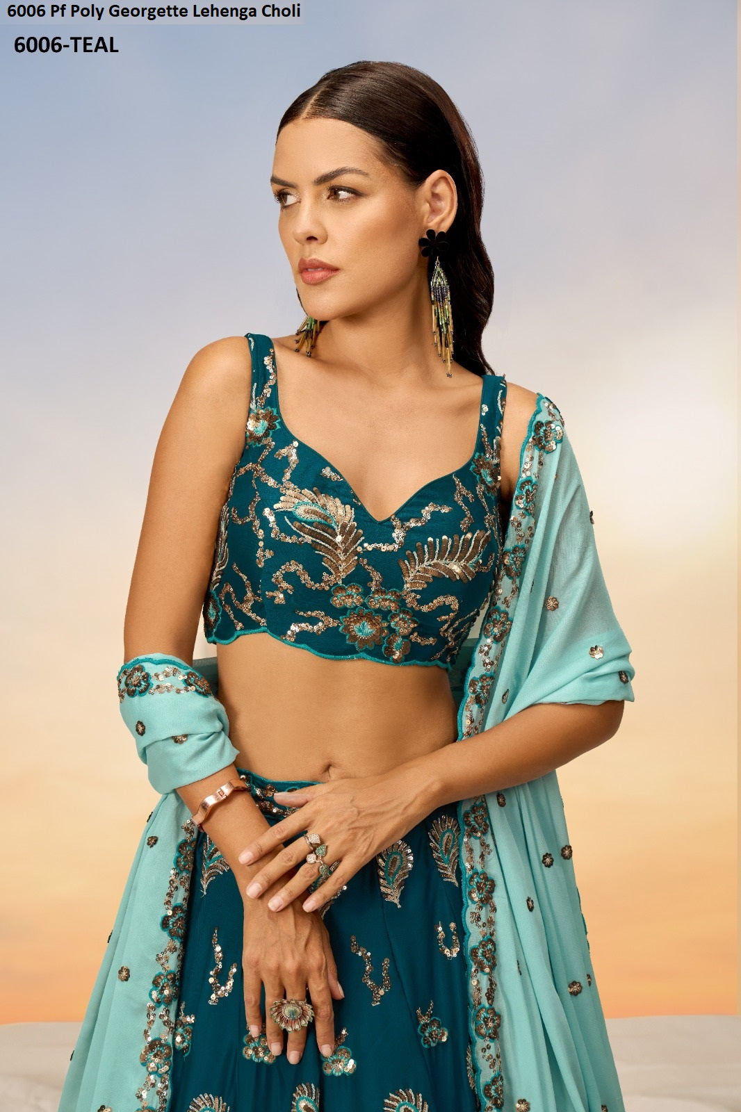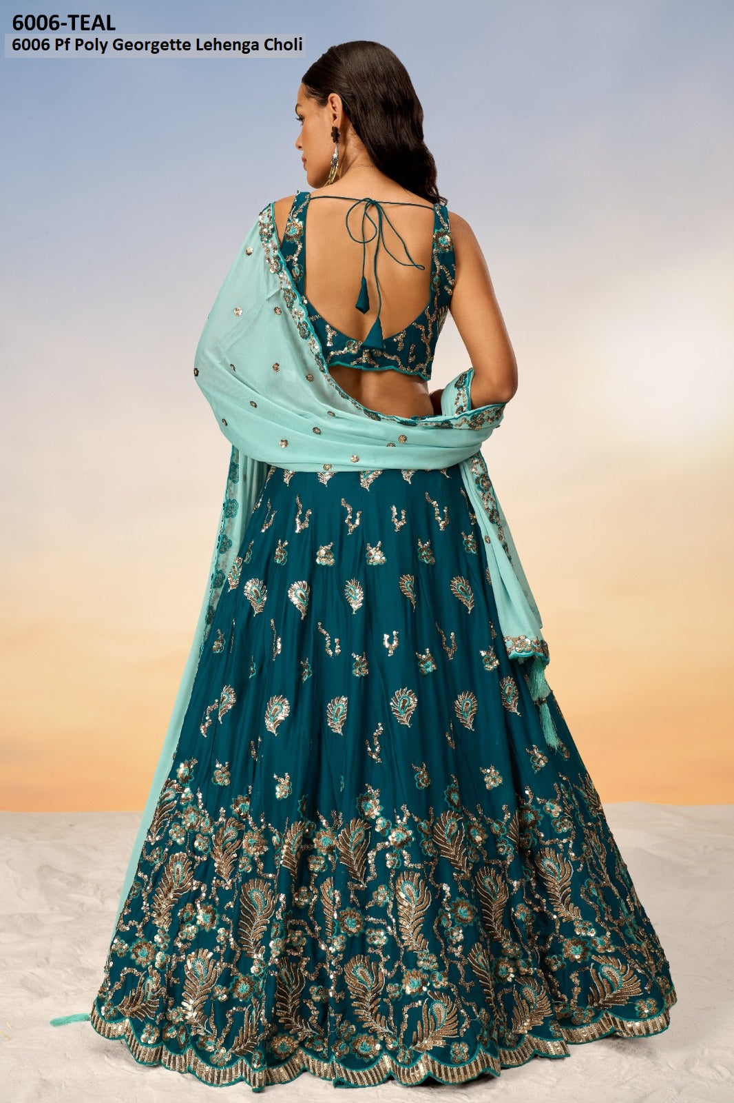 6006 Teal Pf Poly Georgette Lehenga Choli