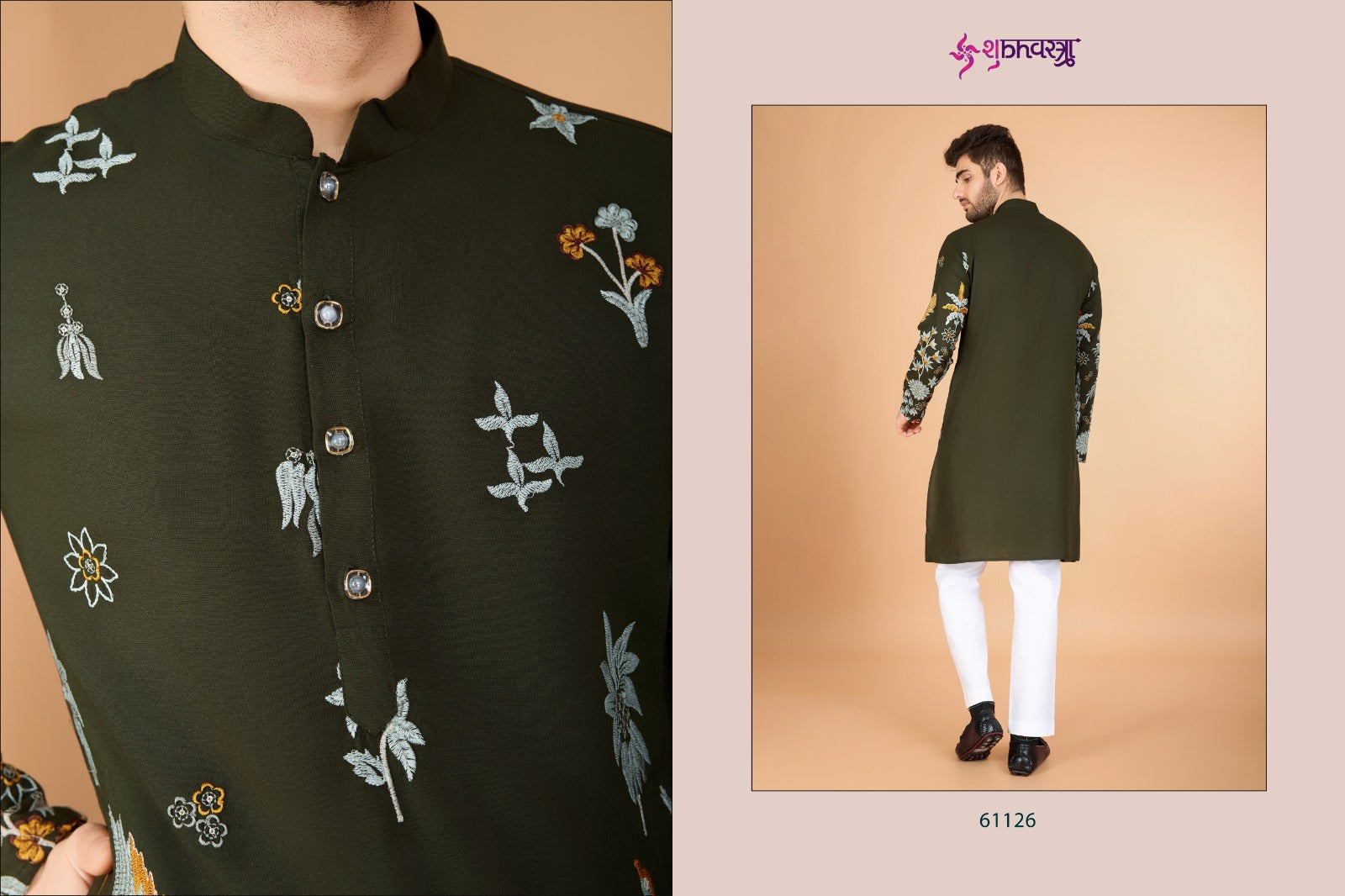 - 61126 Heritage Style Shubhvastra Viscose Mens Kurta Dealer Ahmedabad Surat Wholesale Gujarat India Lowest Price Best Quality Buy Purchase Shipping Kurta Salwaar Kameez Also free Cash on delivery