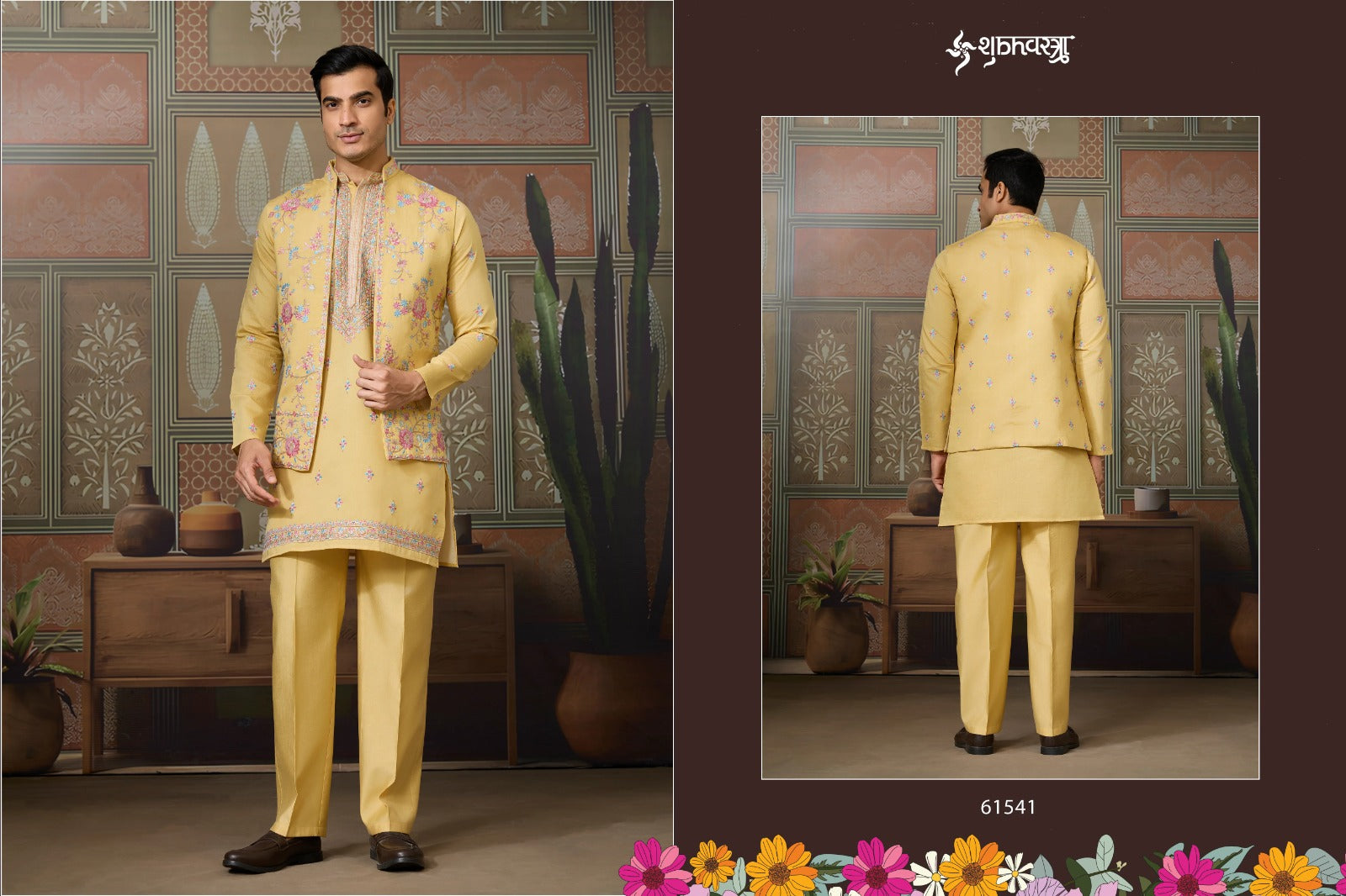 61541 Golden Viraasat Shubhvastra With Koti Mens Kurta Pyjama