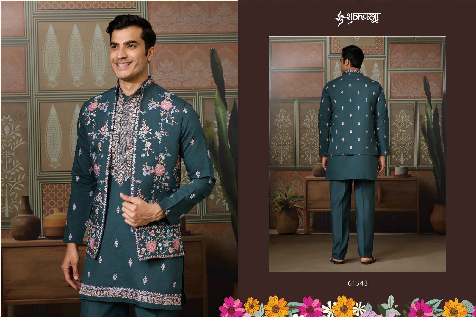- 61543 Golden Viraasat Unstitch Shubhvastra With Koti Mens Kurta Pyjama Dealer Ahmedabad Surat Wholesale Gujarat India Lowest Price Best Quality Buy Purchase Shipping Kurta Salwaar Kameez Also free Cash on delivery