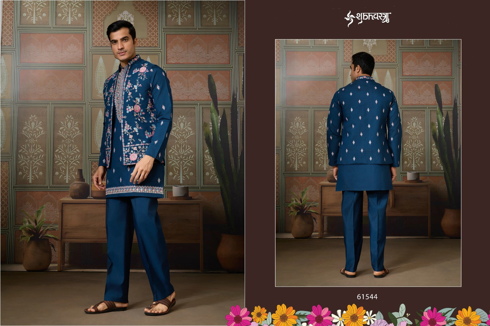 61544 Golden Viraasat Shubhvastra With Koti Mens Kurta Pyjama