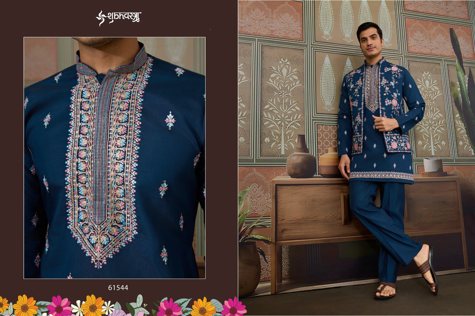 - 61544 Golden Viraasat Unstitch Shubhvastra With Koti Mens Kurta Pyjama Dealer Ahmedabad Surat Wholesale Gujarat India Lowest Price Best Quality Buy Purchase Shipping Kurta Salwaar Kameez Also free Cash on delivery