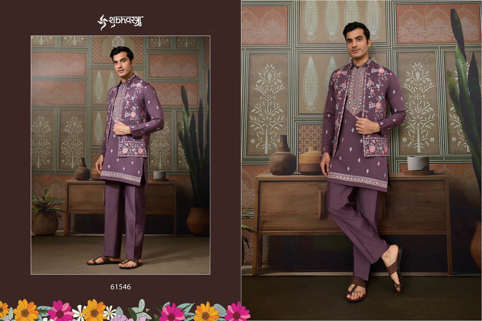 - 61546 Golden Viraasat Unstitch Shubhvastra With Koti Mens Kurta Pyjama Dealer Ahmedabad Surat Wholesale Gujarat India Lowest Price Best Quality Buy Purchase Shipping Kurta Salwaar Kameez Also free Cash on delivery
