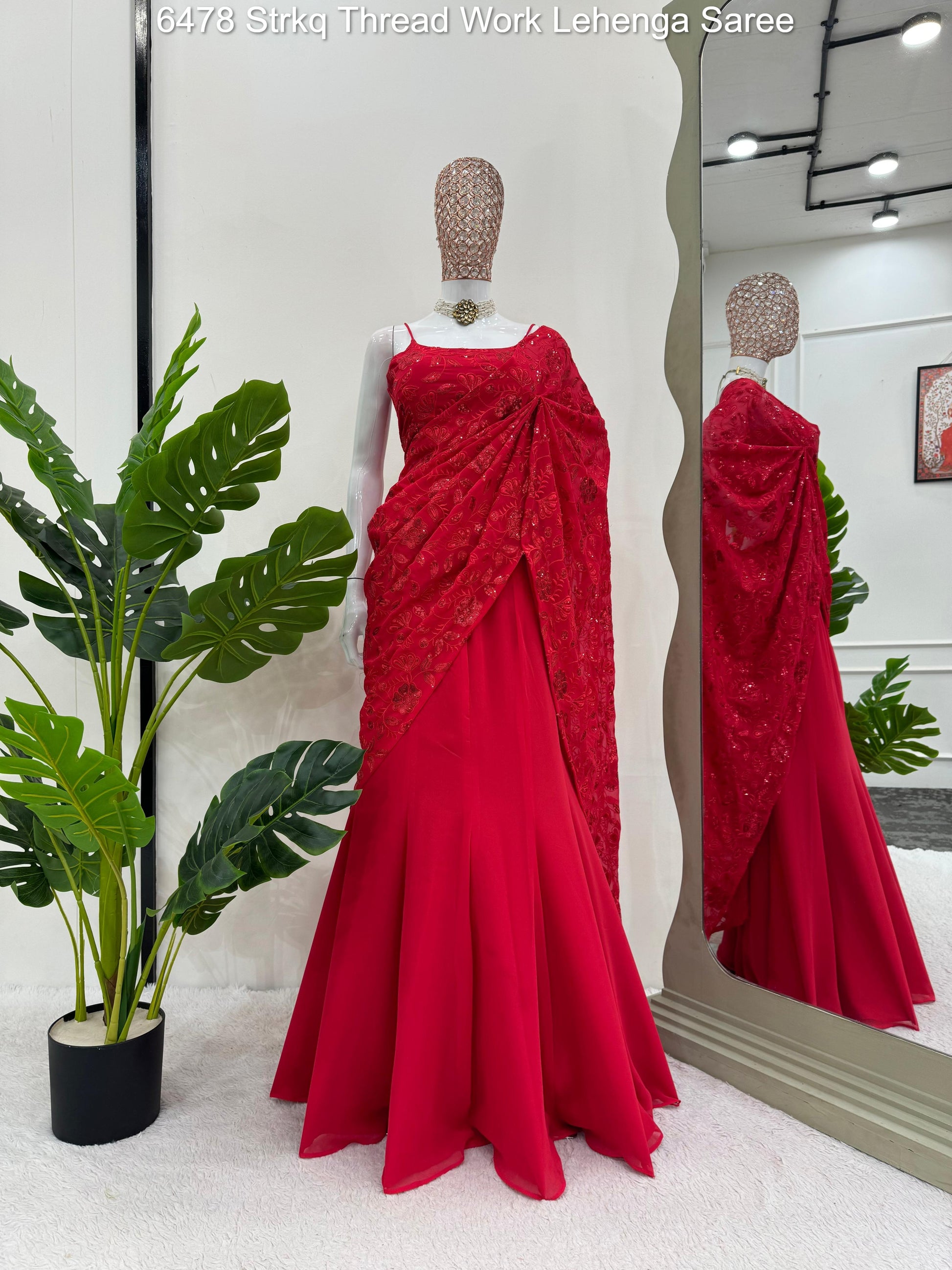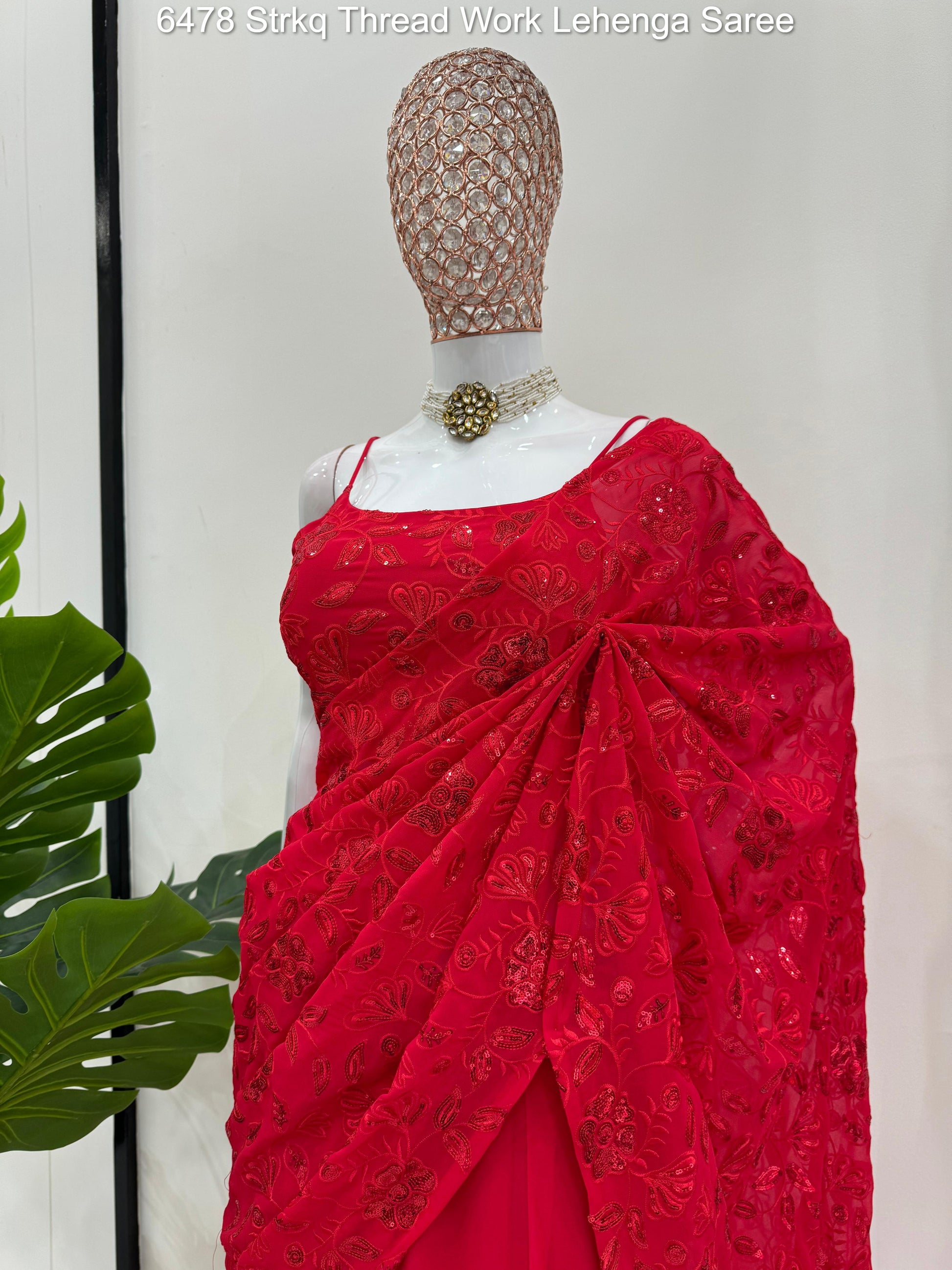 6478 Strkq Thread Work Lehenga Saree