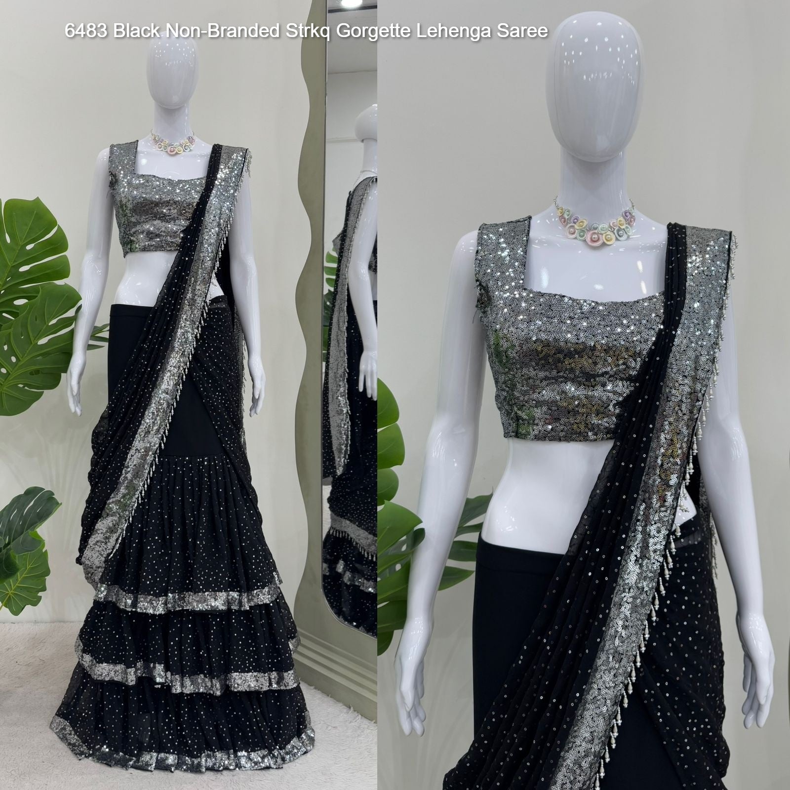 6483 Black Non-Branded Strkq Gorgette Lehenga Saree