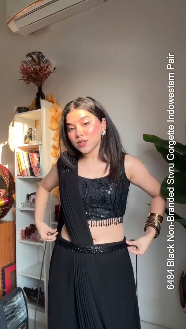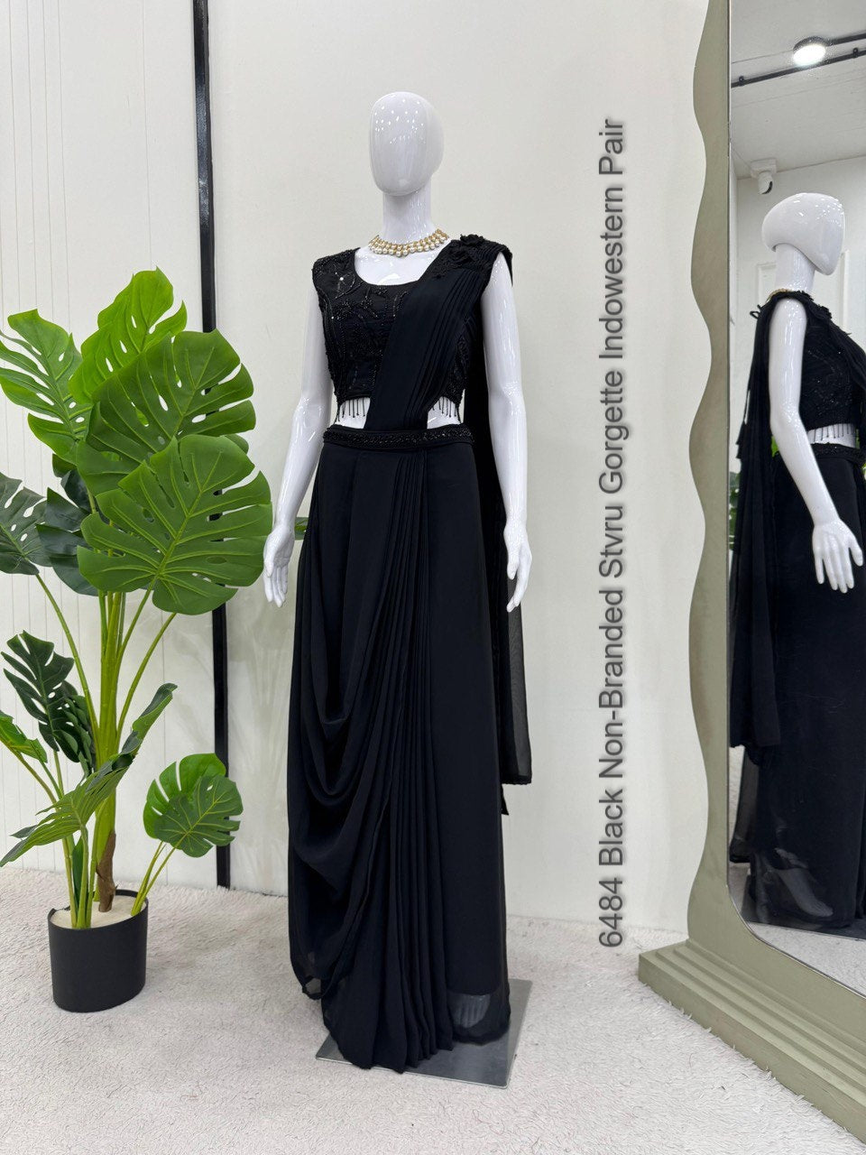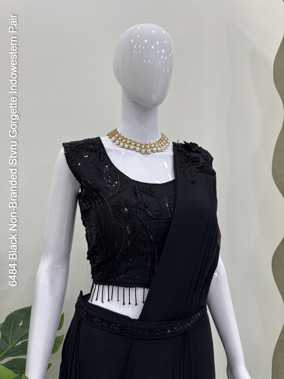 6484 Black Non-Branded Stvru Gorgette Indowestern Pair