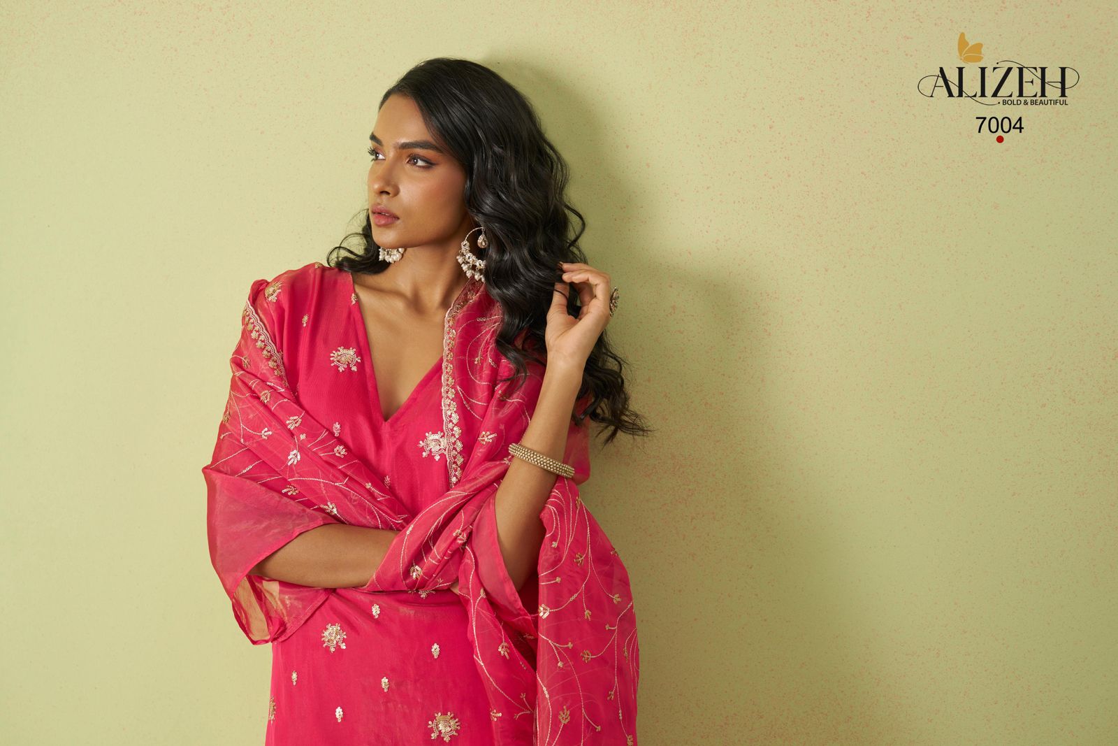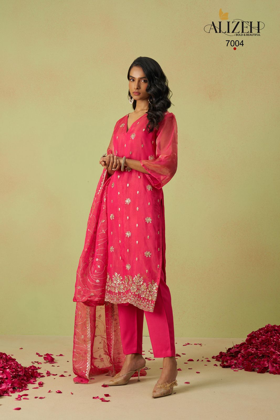 7004 Gulaabo Alizeh Shimmer Unstitched Suits