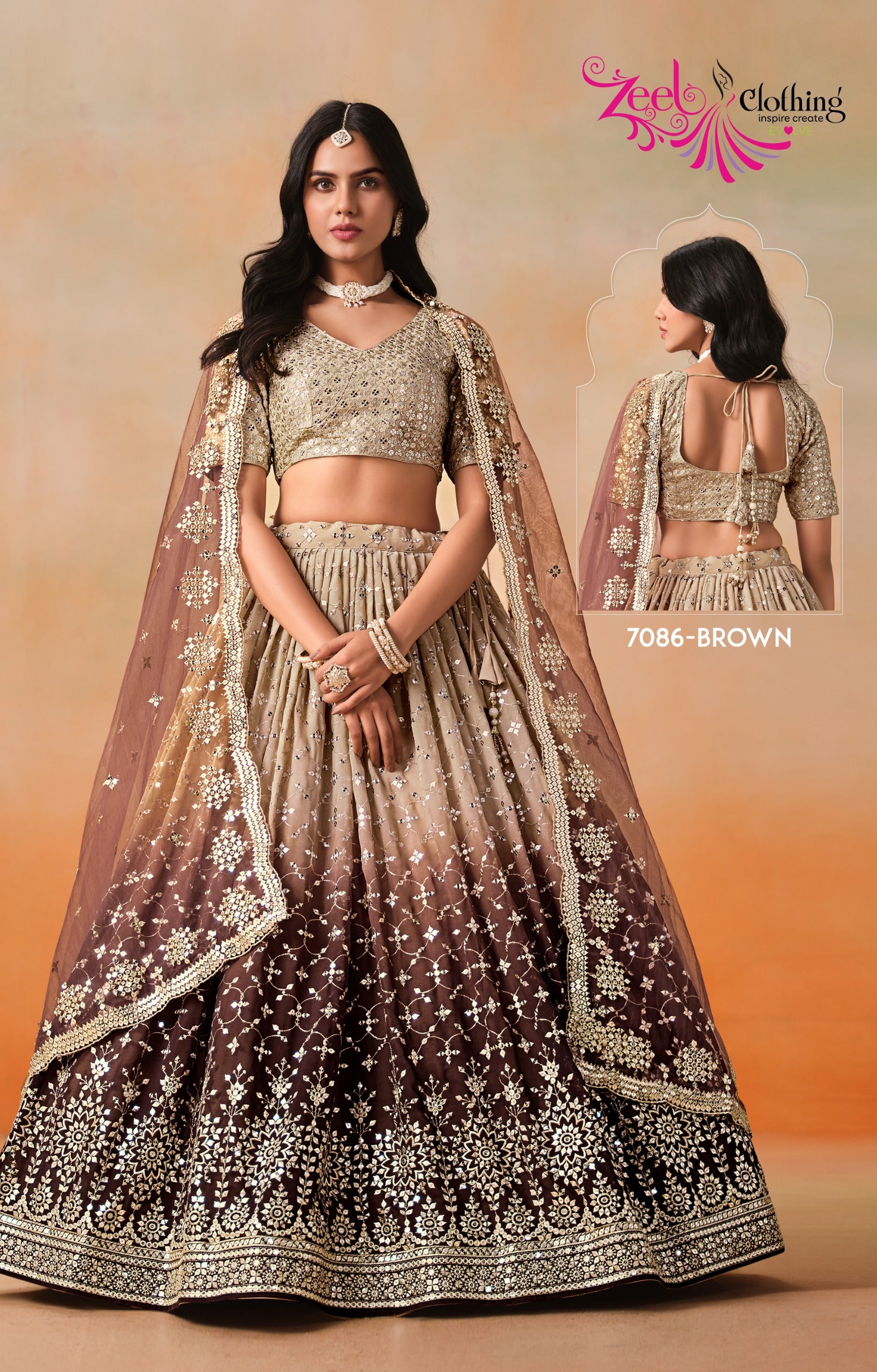 - 7086-Brown Elegance Zeel Georgette Lehenga Choli Dealer Ahmedabad Surat Wholesale Gujarat India Lowest Price Best Quality Buy Purchase Shipping Kurta Salwaar Kameez Also free Cash on delivery