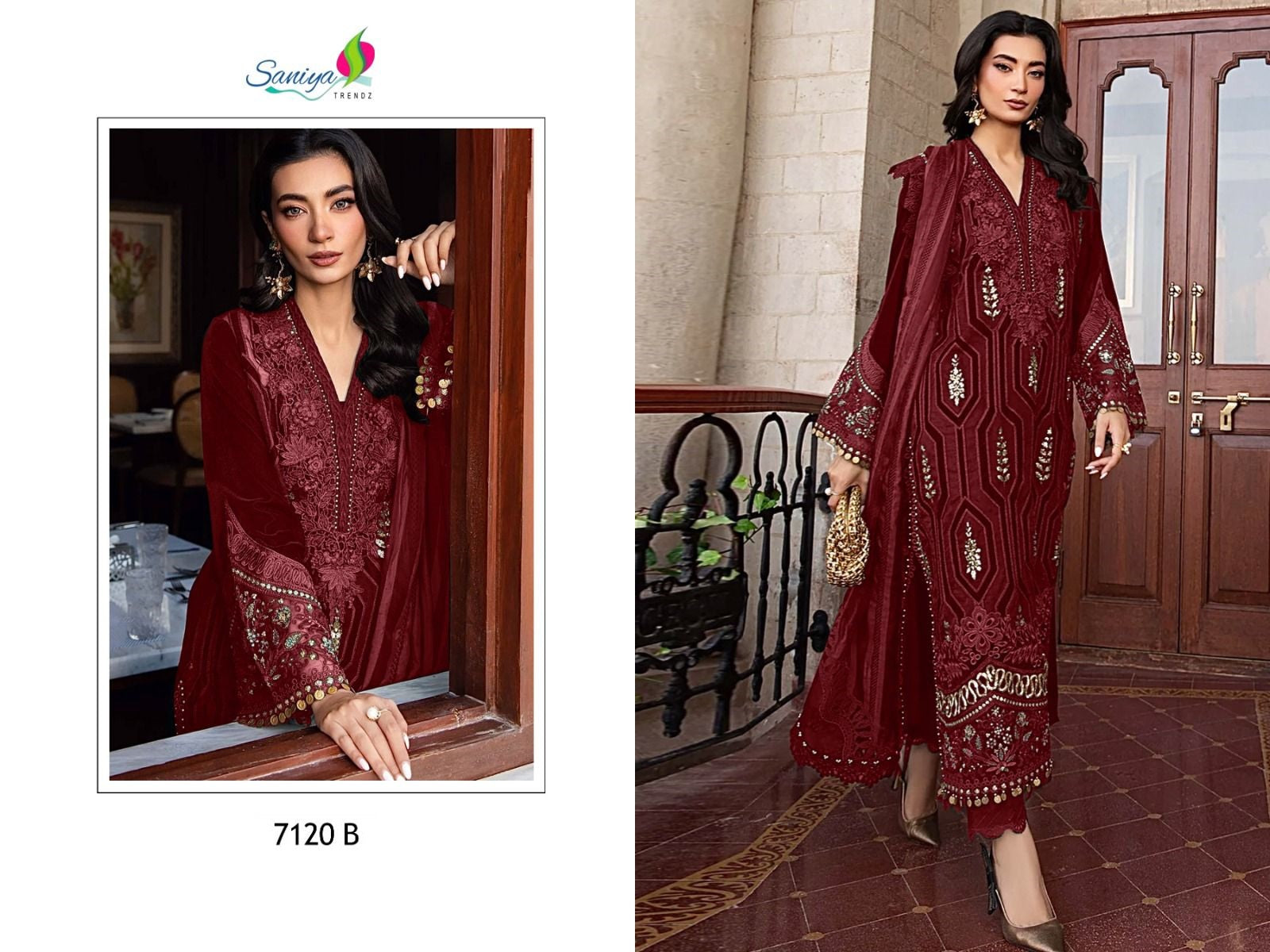 - 7120B Mariya B Saniya Trendz Rayon Pakistani Salwar Suits Dealer Ahmedabad Surat Wholesale Gujarat India Lowest Price Best Quality Buy Purchase Shipping Kurta Salwaar Kameez Also free Cash on delivery