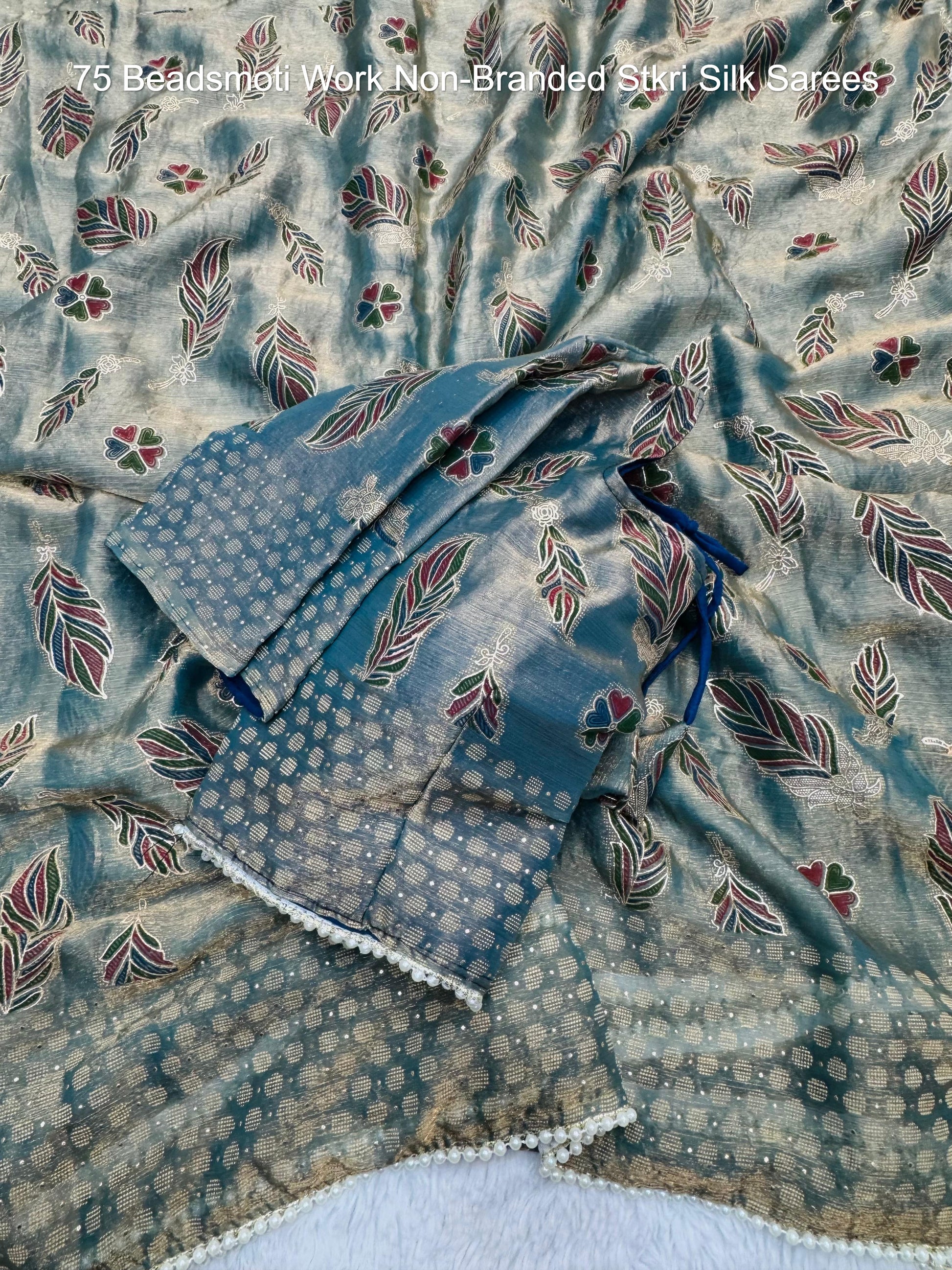 75 Beadsmoti Work Non-Branded Stkri Silk Sarees