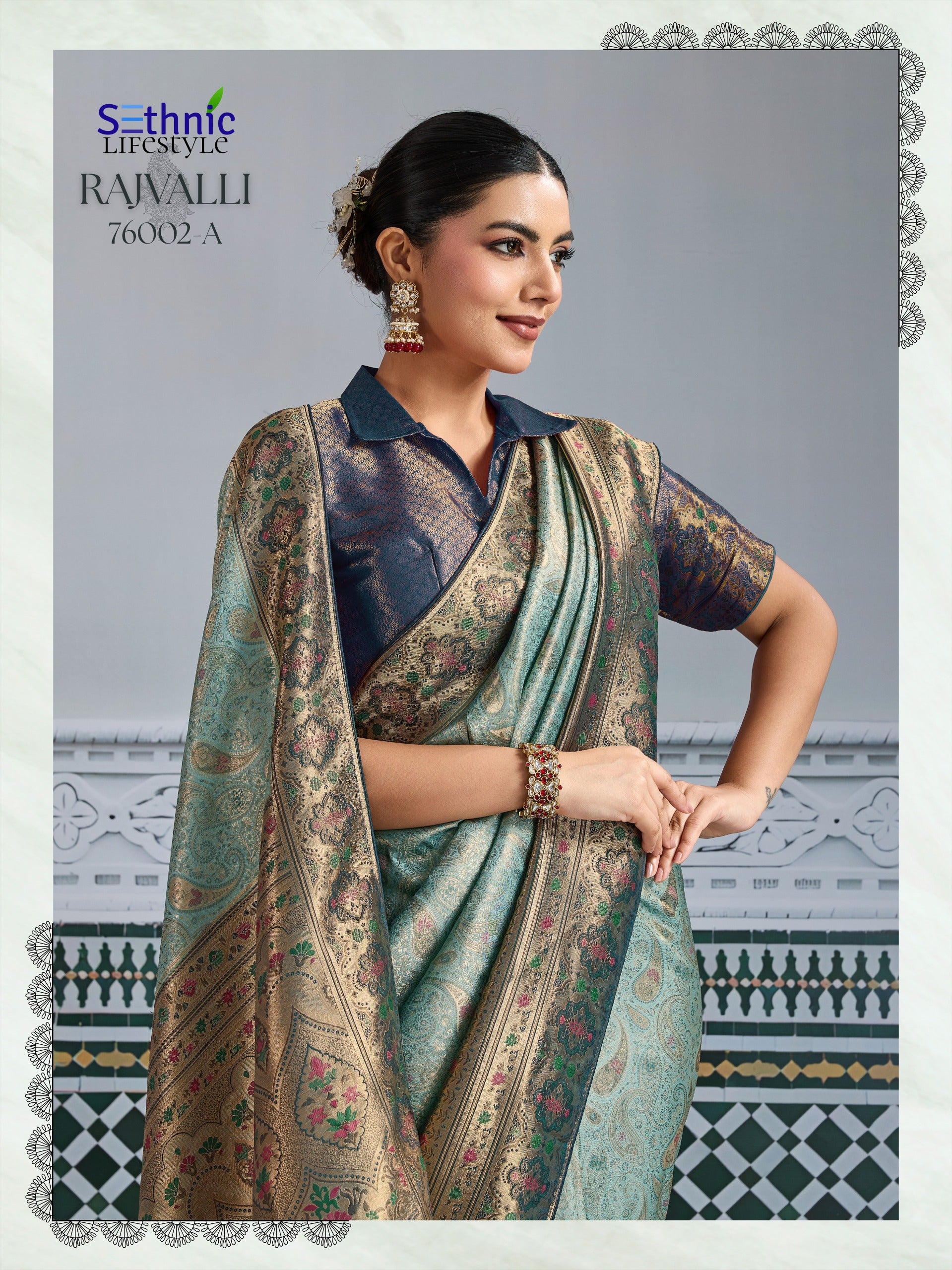 76002A Rajvalli Platinum Sethnic Soft Silk Sarees