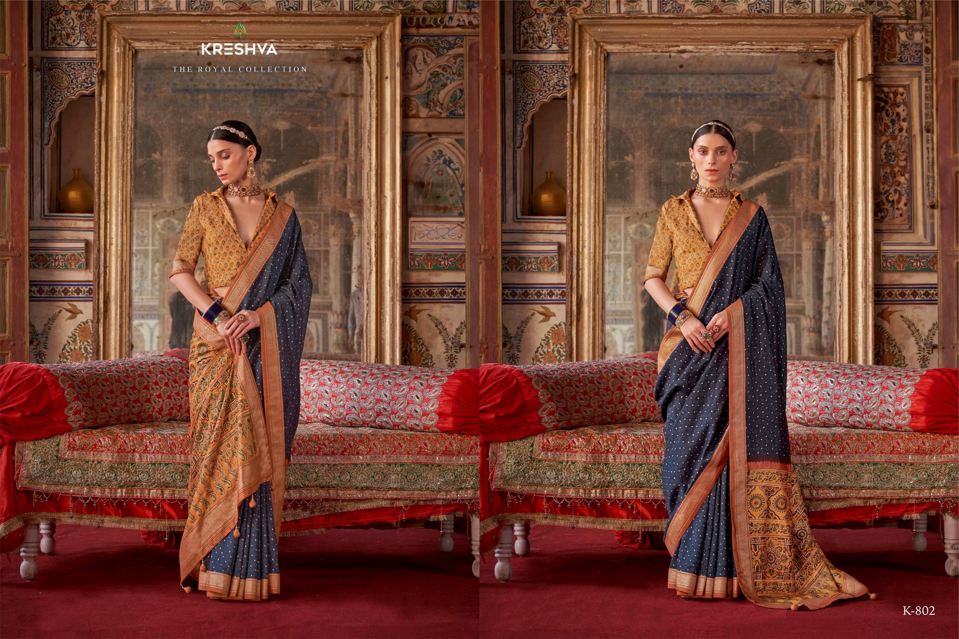 - 802 Indrani Kreshva Gold Finish Sarees Dealer Ahmedabad Surat Wholesale Gujarat India Lowest Price Best Quality Buy Purchase Shipping Kurta Salwaar Kameez Also free Cash on delivery
