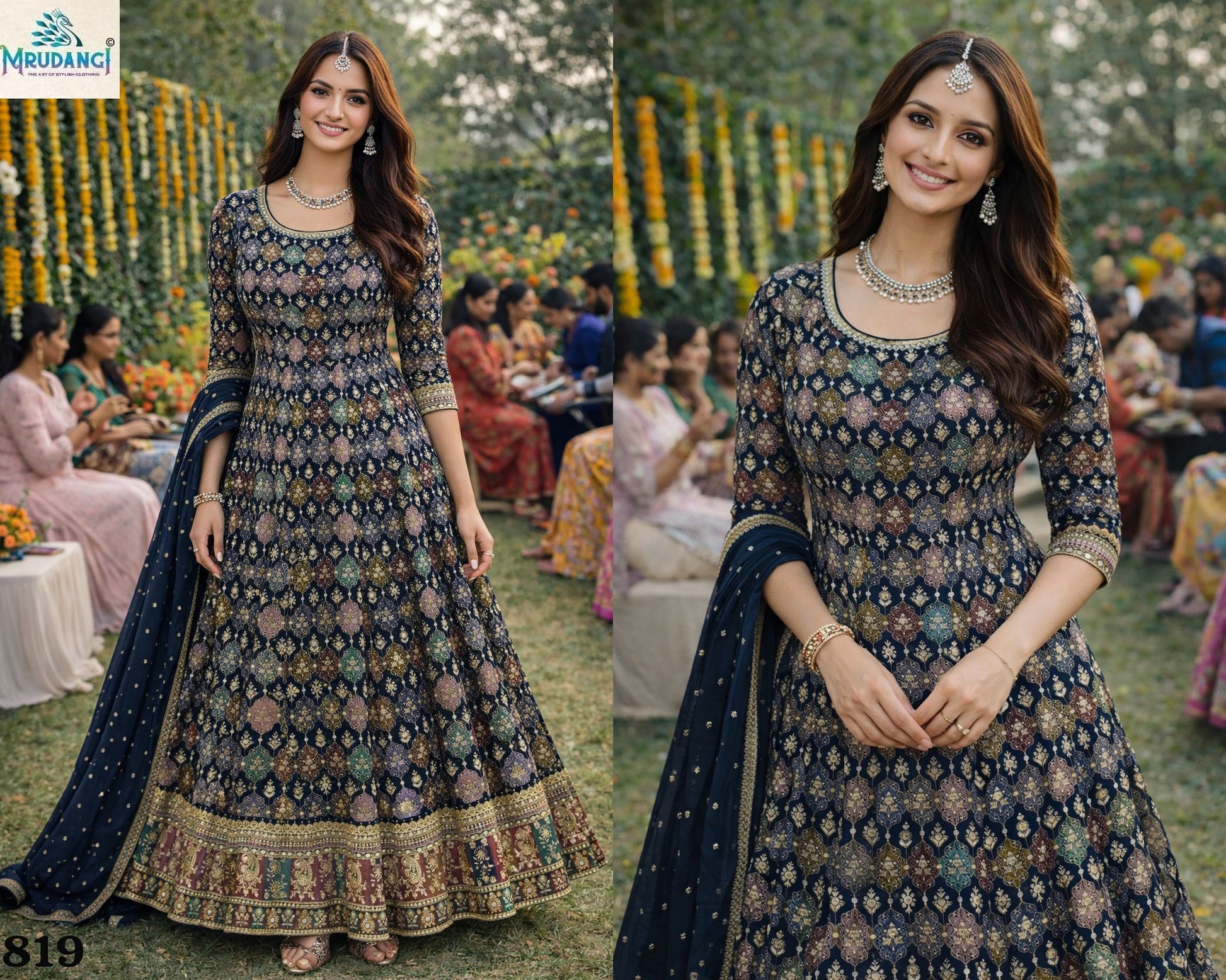 - 819 Devki Mrudangi Real Premium Georgette Gown Dupatta Set Dealer Ahmedabad Surat Wholesale Gujarat India Lowest Price Best Quality Buy Purchase Shipping Kurta Salwaar Kameez Also free Cash on delivery