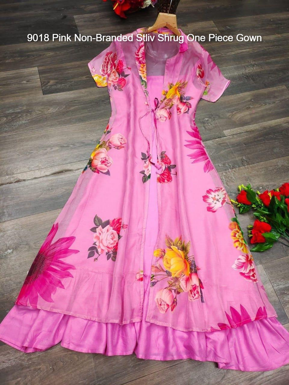 - 9018 Pink Non-Branded Stliv Shrug One Piece Gown Dealer Ahmedabad Surat Wholesale Gujarat India Lowest Price Best Quality Buy Purchase Shipping Kurta Salwaar Kameez Also free Cash on delivery