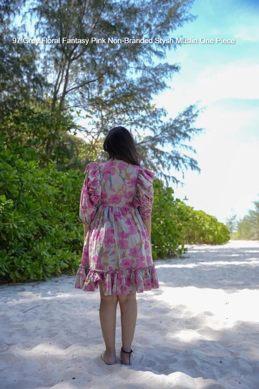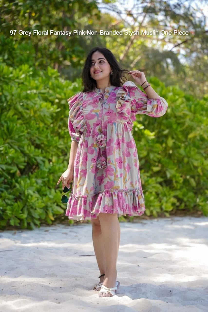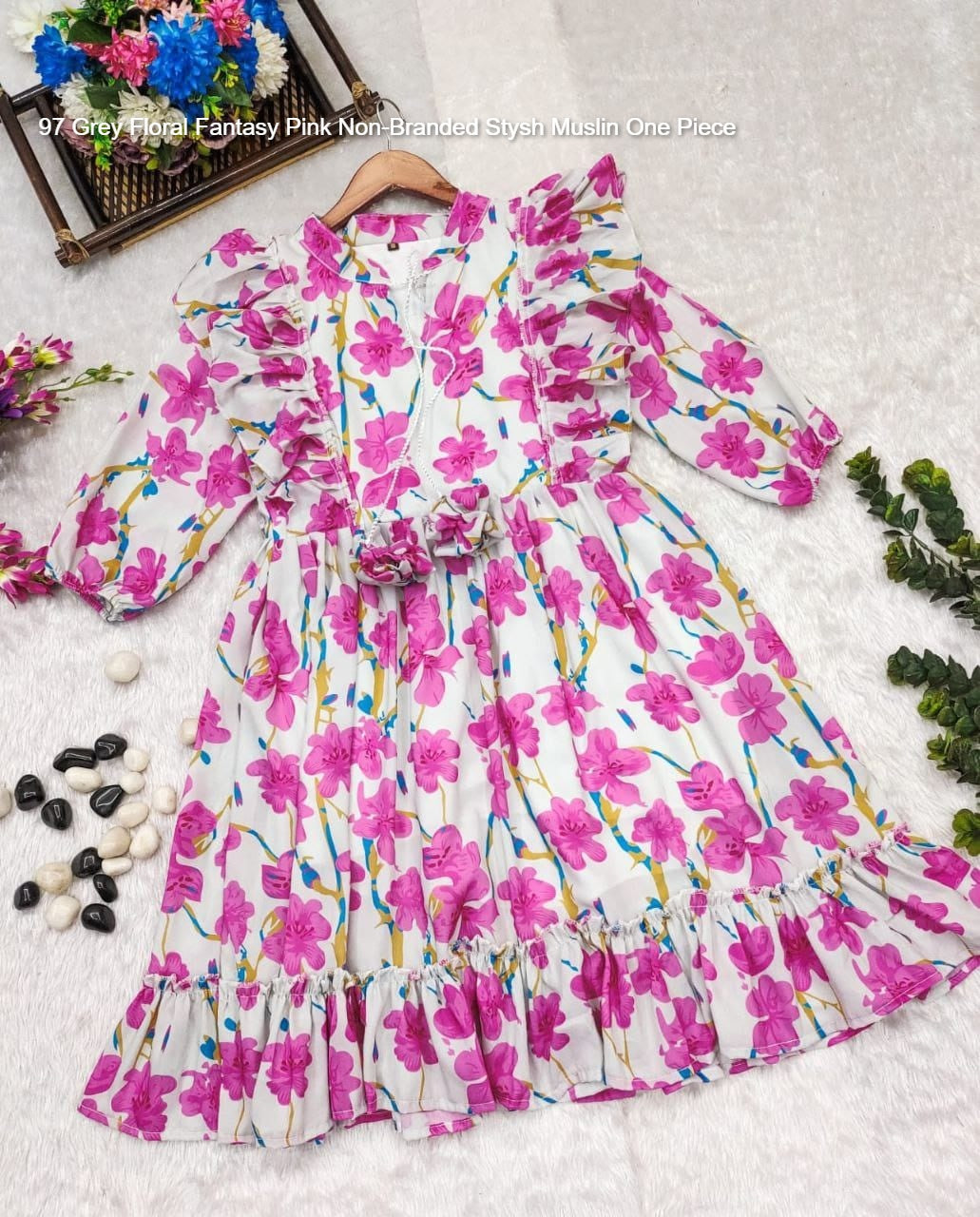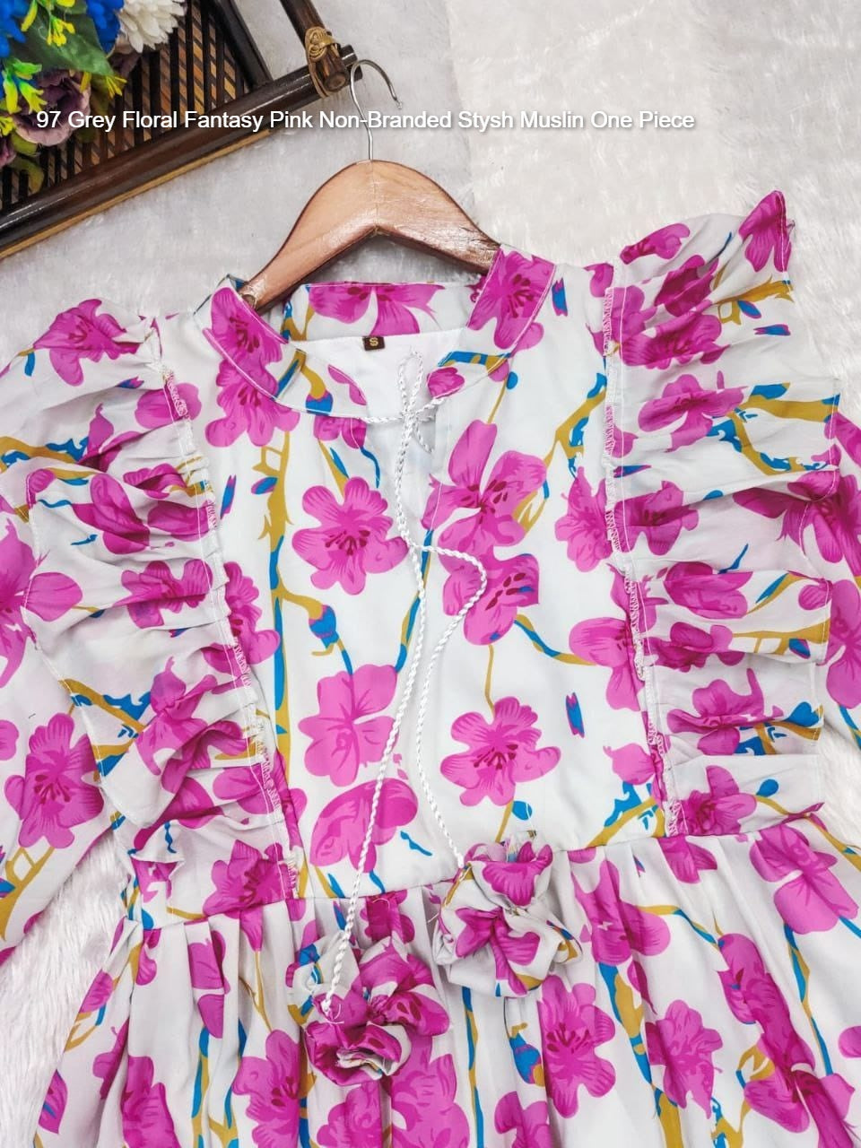 - 97 Grey Floral Fantasy Pink Non-Branded Stysh Muslin One Piece Dealer Ahmedabad Surat Wholesale Gujarat India Lowest Price Best Quality Buy Purchase Shipping Kurta Salwaar Kameez Also free Cash on delivery