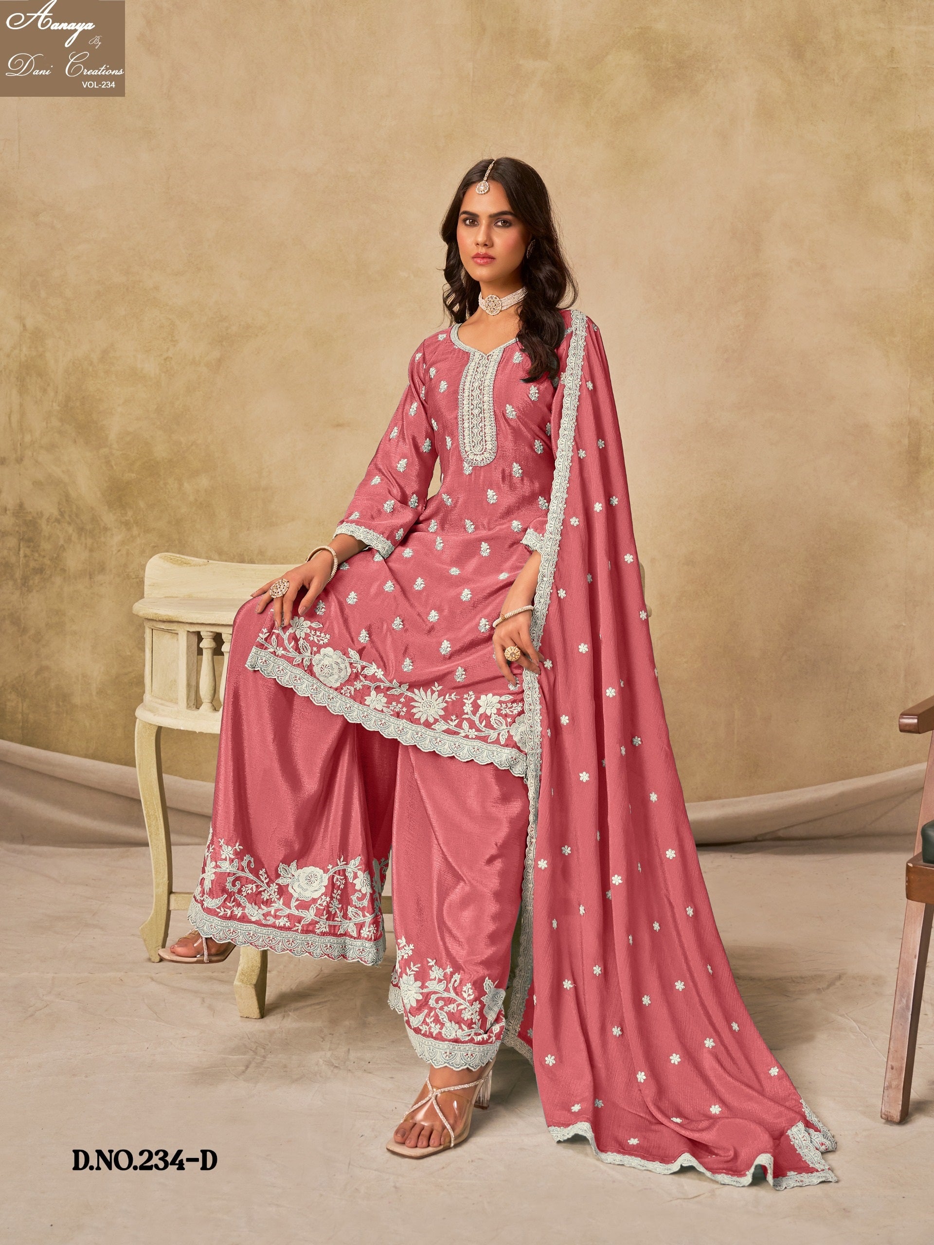- Aanaya Vol 234-D Dani Creation Chinon Silk Unstitched Suits Dealer Ahmedabad Surat Wholesale Gujarat India Lowest Price Best Quality Buy Purchase Shipping Kurta Salwaar Kameez Also free Cash on delivery
