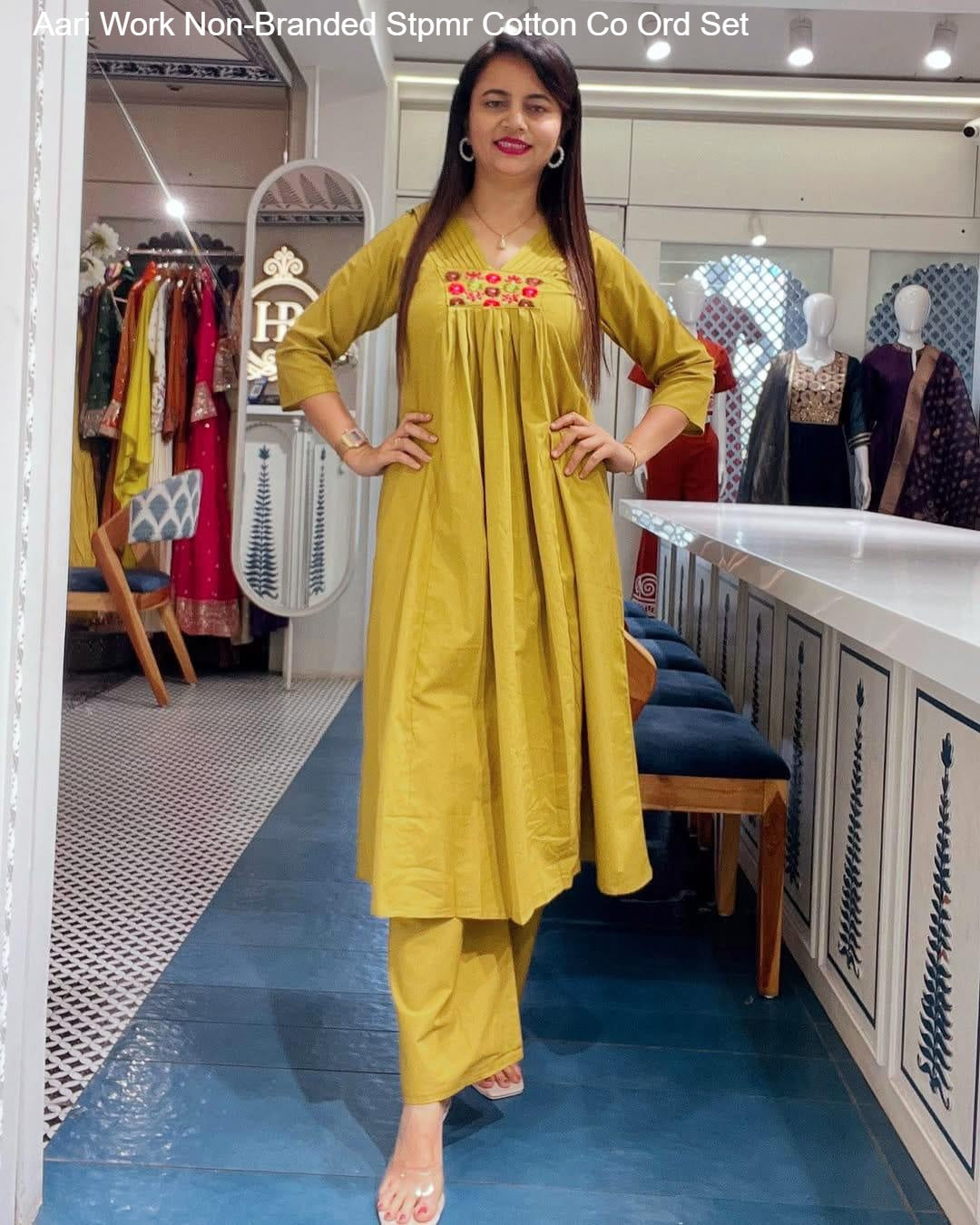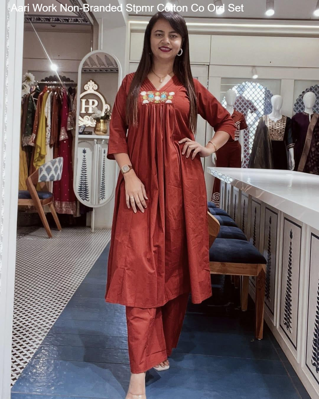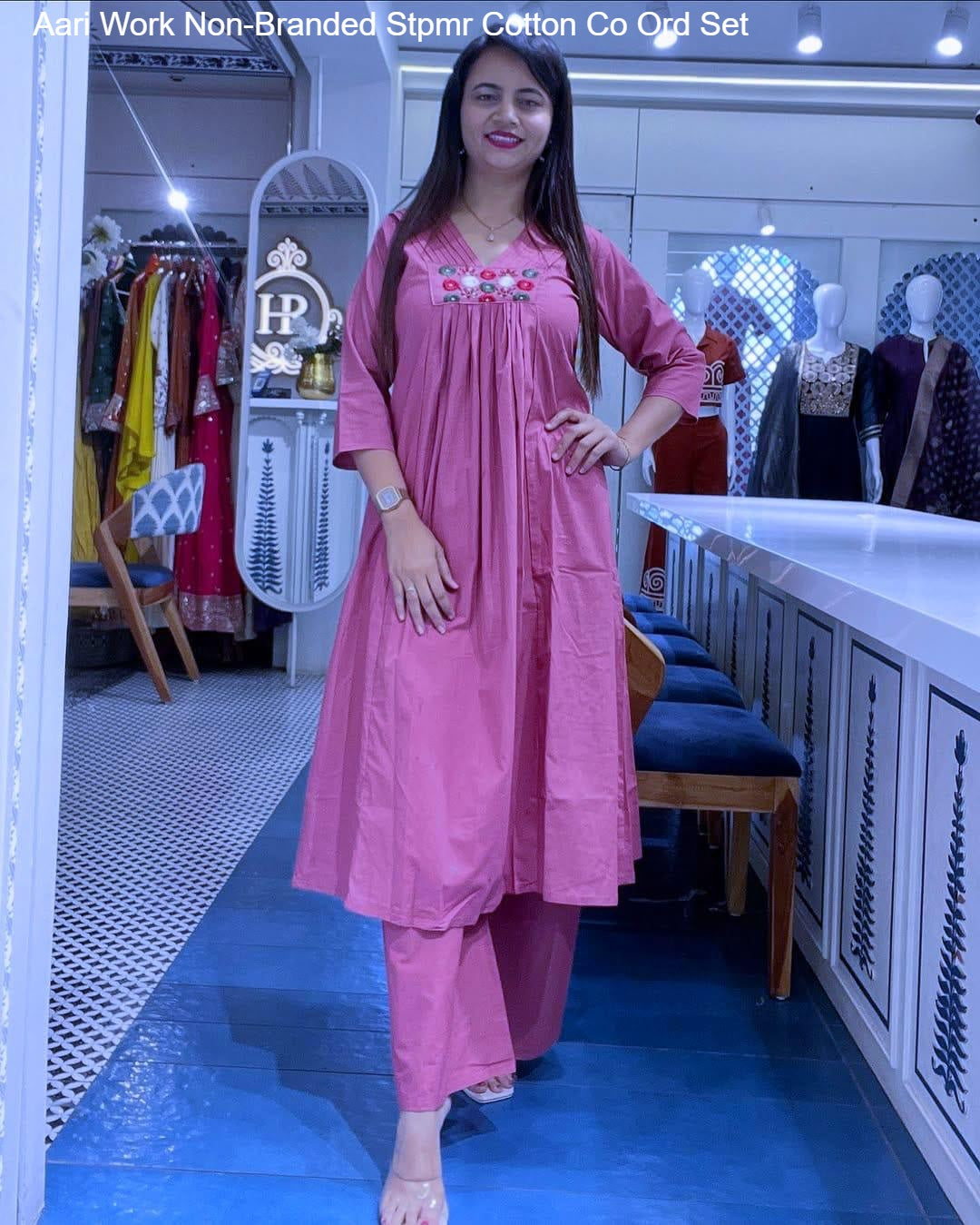 - Aari Work Non-Branded Stpmr Cotton Co Ord Set Dealer Ahmedabad Surat Wholesale Gujarat India Lowest Price Best Quality Buy Purchase Shipping Kurta Salwaar Kameez Also free Cash on delivery