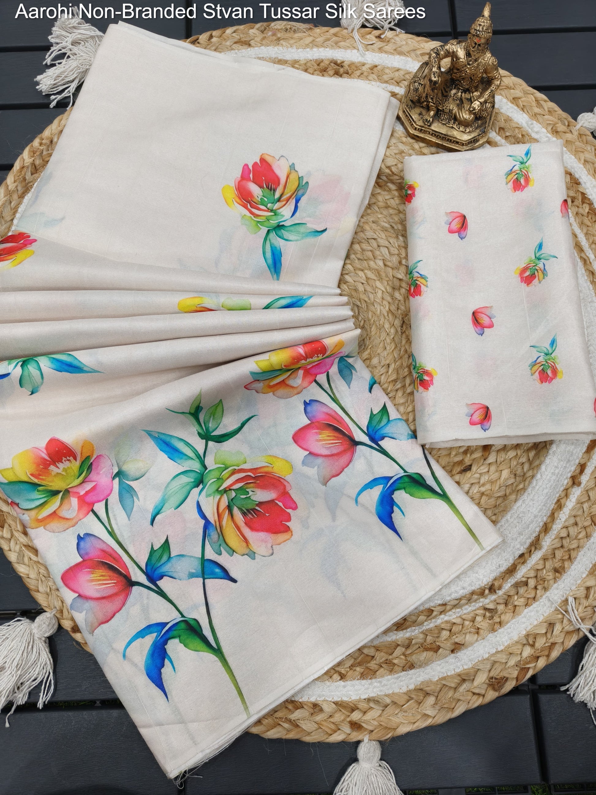 Aarohi Non-Branded Stvan Tussar Silk Sarees