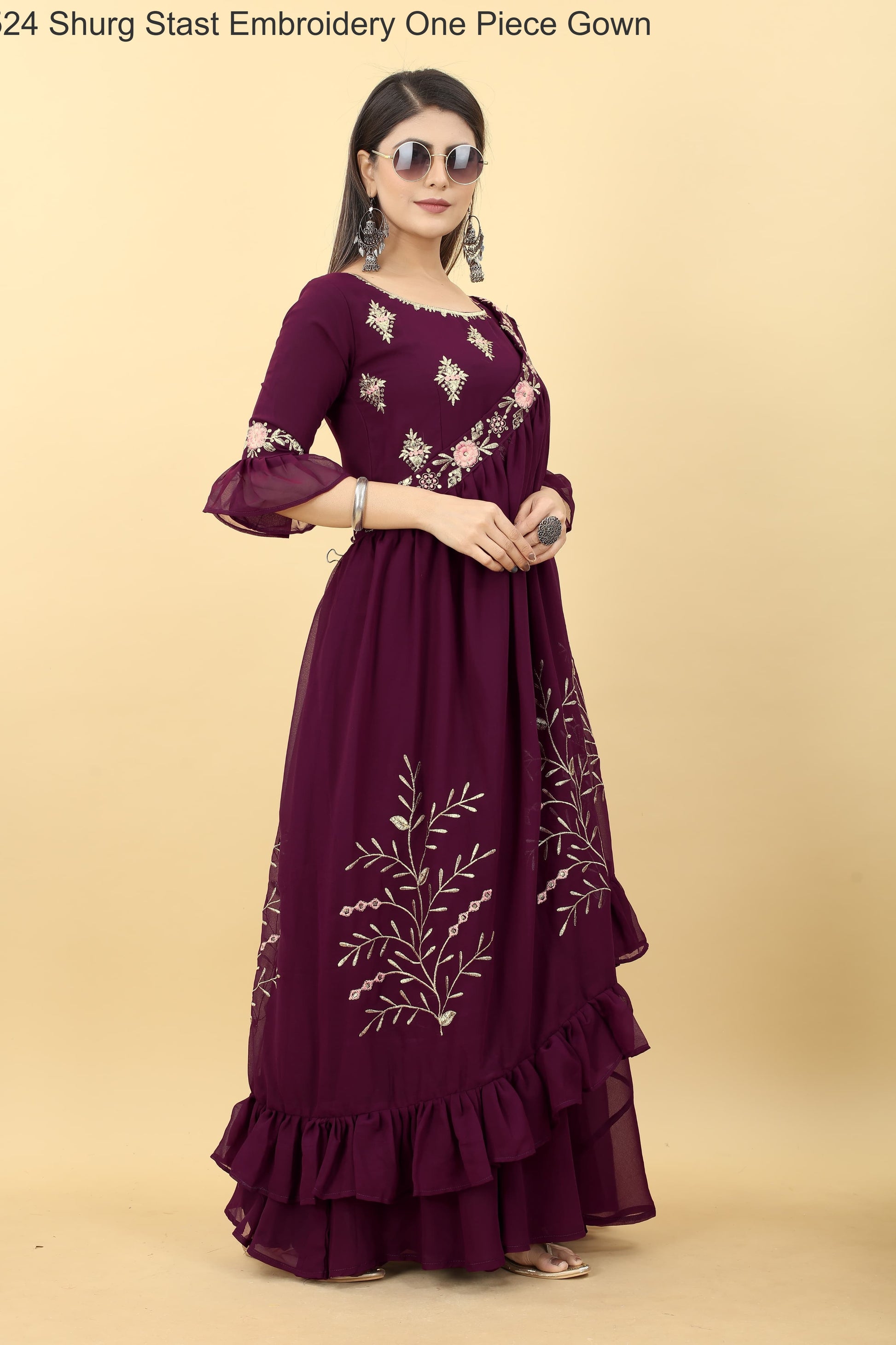 - Ab-524 Shurg Stast Embroidery One Piece Gown Dealer Ahmedabad Surat Wholesale Gujarat India Lowest Price Best Quality Buy Purchase Shipping Kurta Salwaar Kameez Also free Cash on delivery