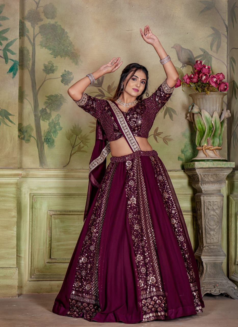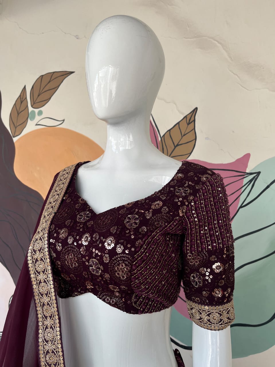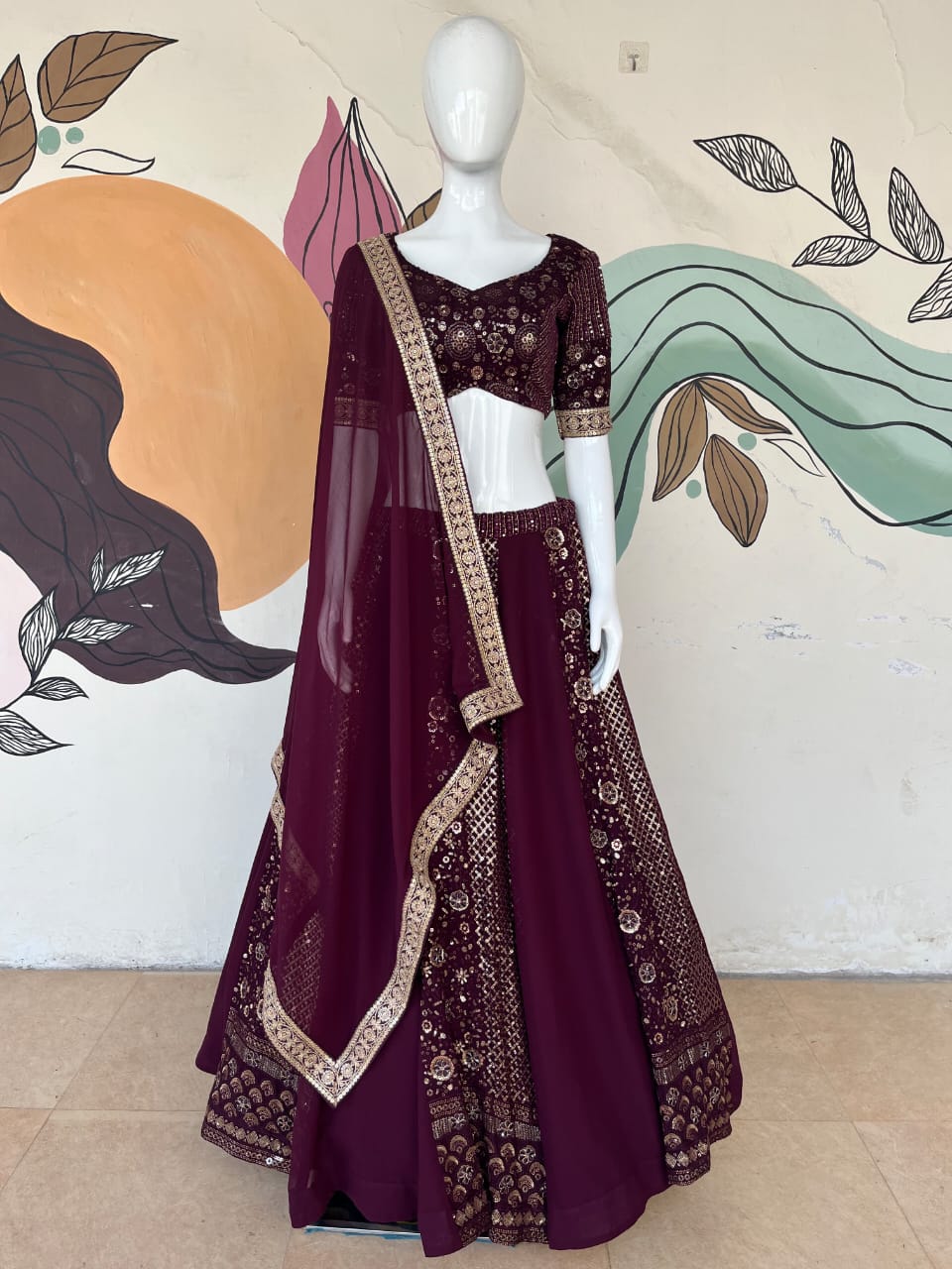 - Fabric Detail: Lehenga: Full Stitched Heavy Georgette 60 Gm Embroidery Zari Sequence Coding Lace Inner: Crape Canvas Belt Can-Can Net Size: Xl 42 Length: 43 Flair: 4.5Mtr Colour: Wine , Blouse: Full Stitched Heavy Georgette With Padded Embroidery Thread Sequence Coding Lace Inner: Cotton, Length: 14.5 Apx, Colour: Wine , Dupatta: Georgette Heavy Embro Idery Zari Sequence Cording Lace, Length : 2.25 Mtr Colour: Wine , Size: S (Chest 36) L(Chest 40) (Extra Margin)