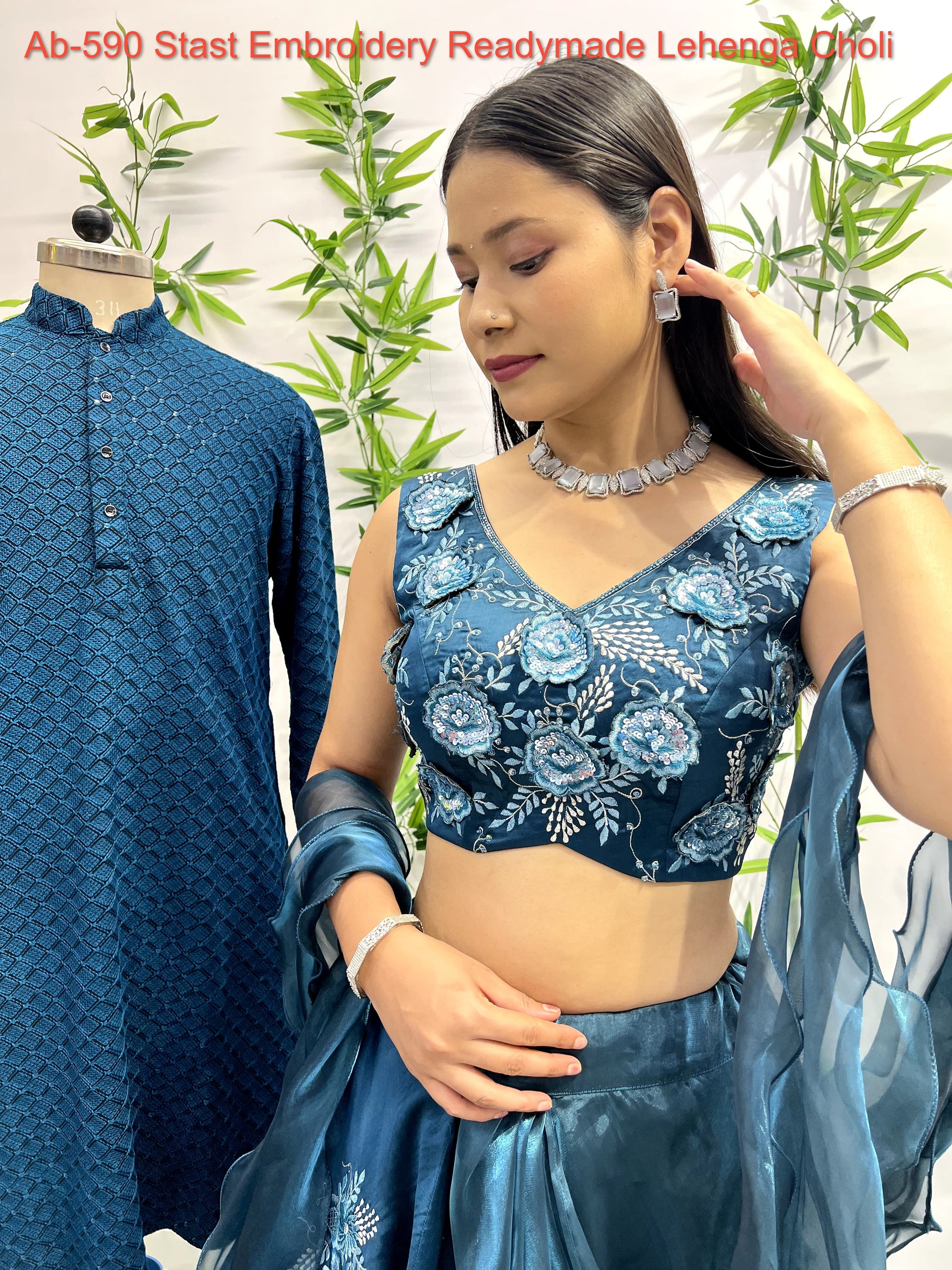 Ab-590 Stast Embroidery Readymade Lehenga Choli