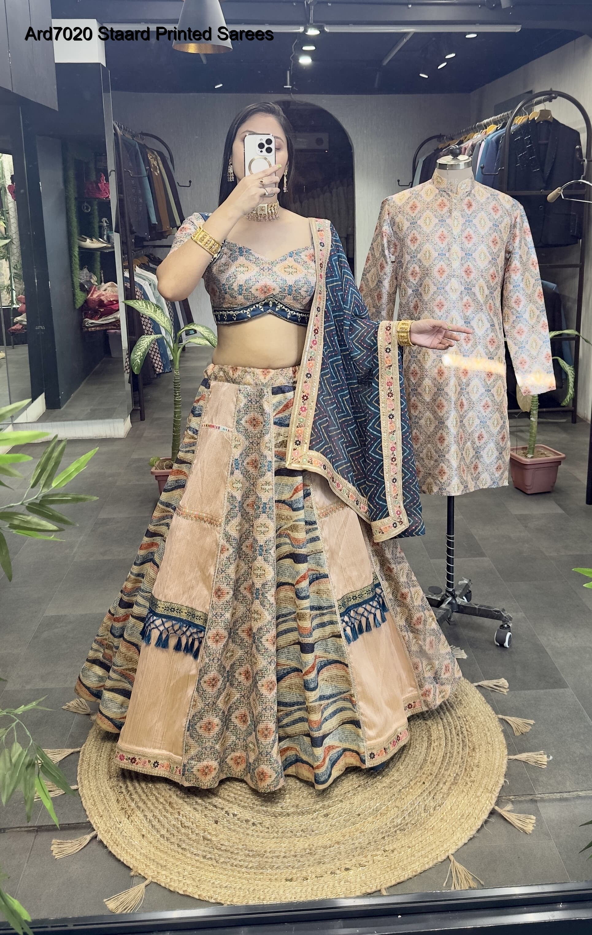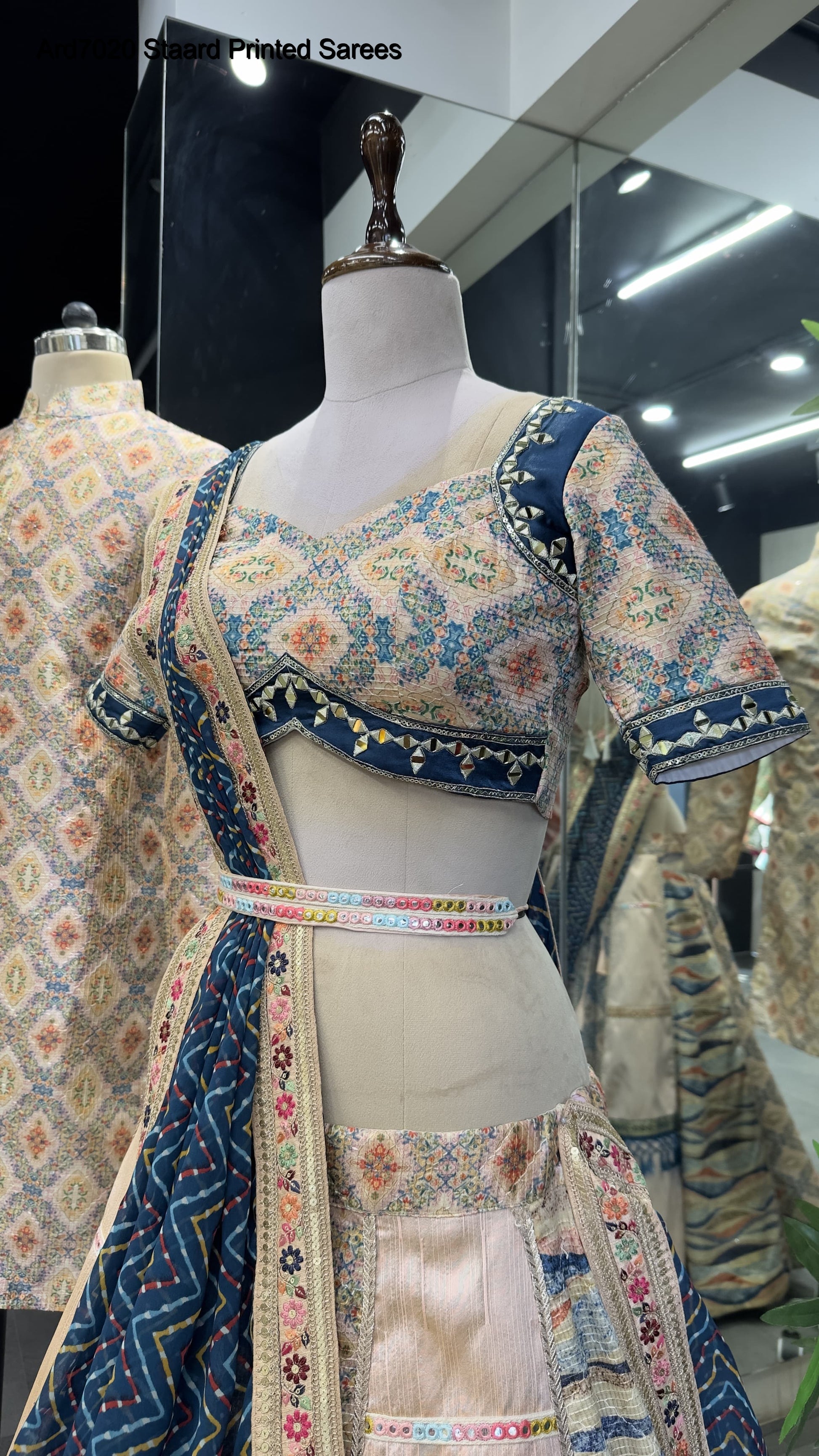 - Fabric Detail: Lehenga : Heavy Mulberry Crepe Can Can Net Heavy Crosek Embroidery Sequence Thread Zari Mirror Ready Lace, Length : 42 Apx, Size : 42 Apx, Flare : 4.5 Mtr, Blouse : Heavy Mulberry Crosek With Padded Original Mirror Sequence Work Peach And Rama Back Side Dori, Length : 15 Apx, Inner : Cotton , Dupatta : Heavy Georgette Embroidery Sequence Work Cording Lace Digital Print Mirror Lace Dori, Cut : 2.25 Mtr , Blouse Size : S (Chest 36) L(Chest 40) Extra Margin ( Mens Matching Kurta Pyjama Available 800 Rs Extra Rate )