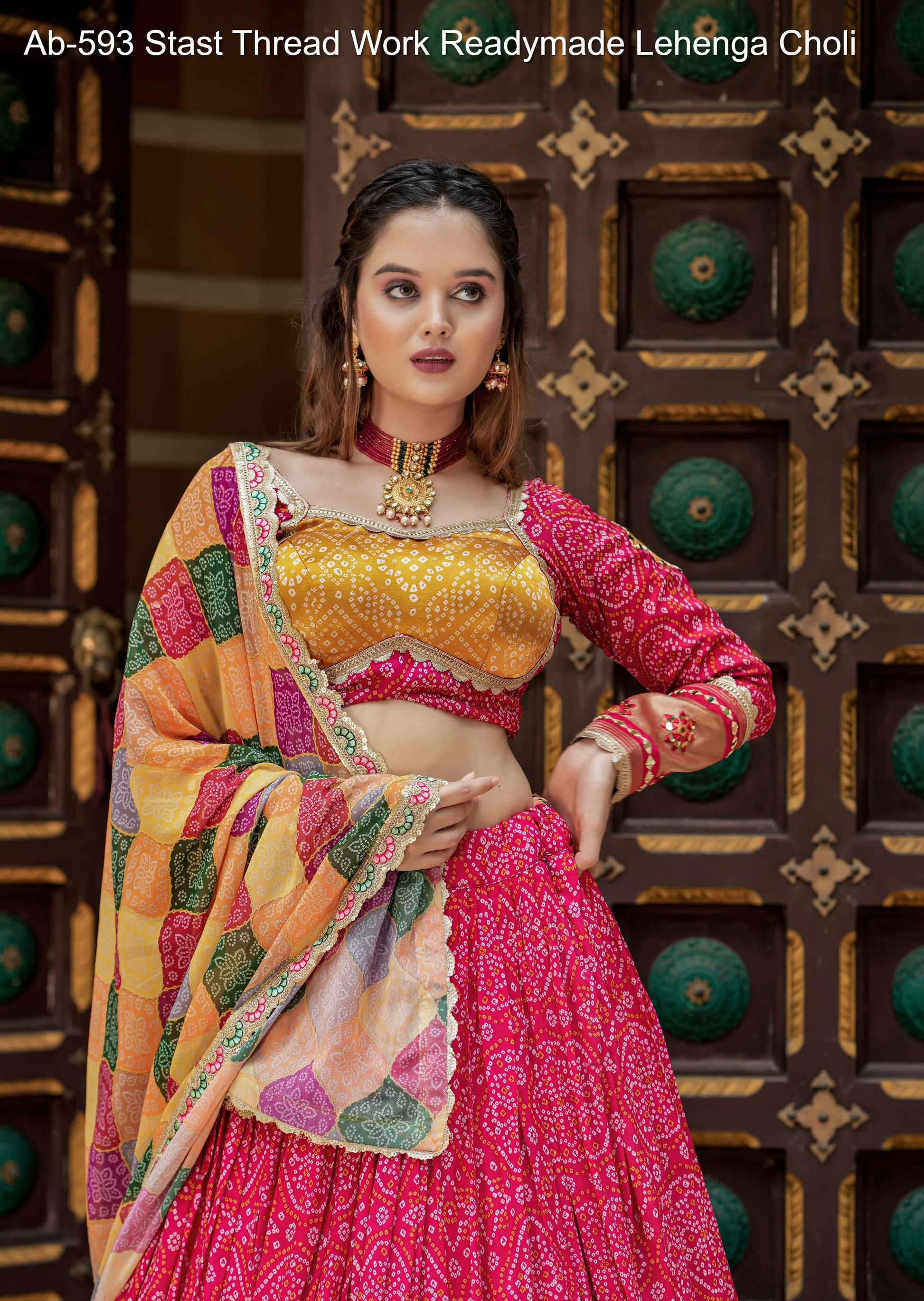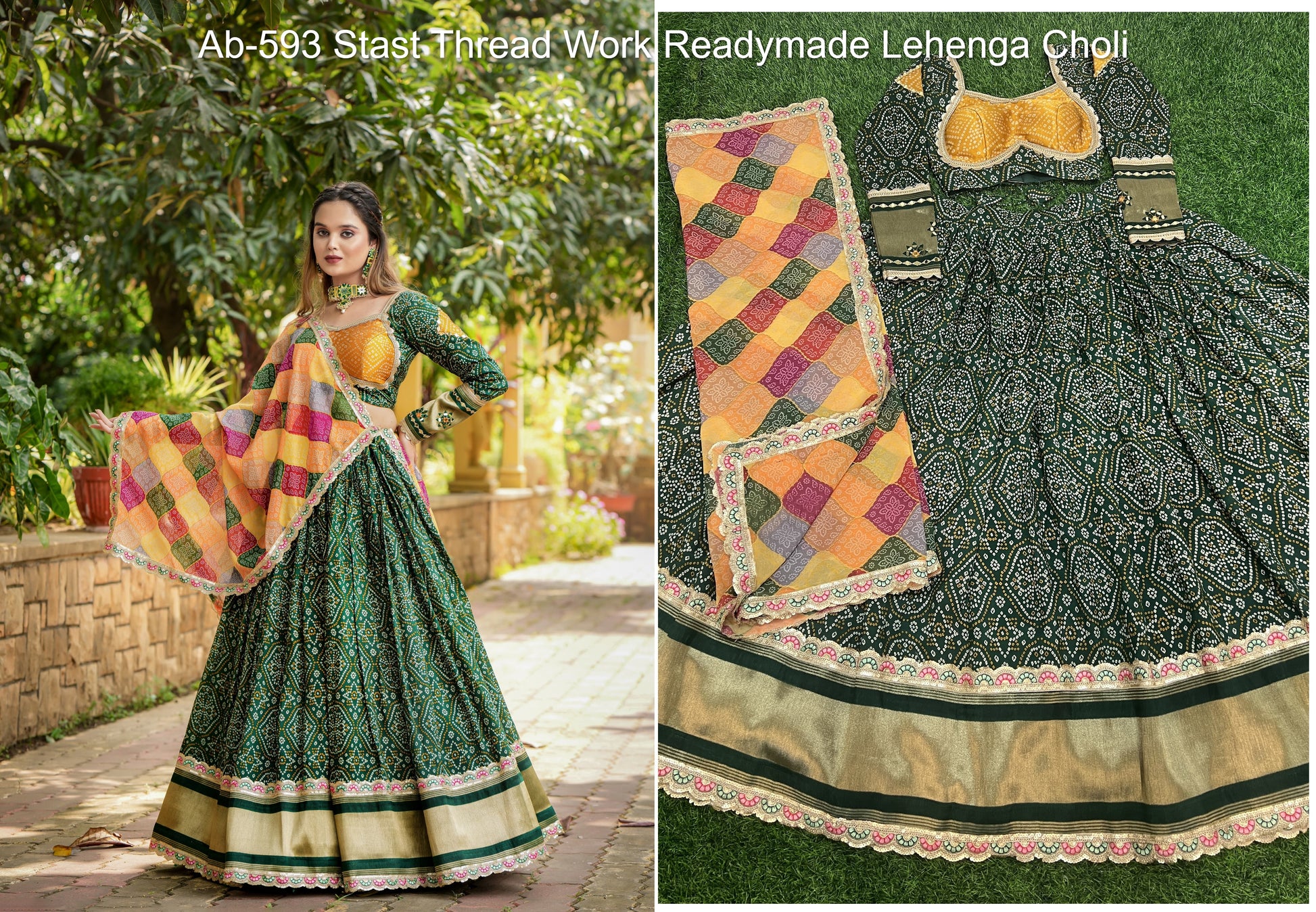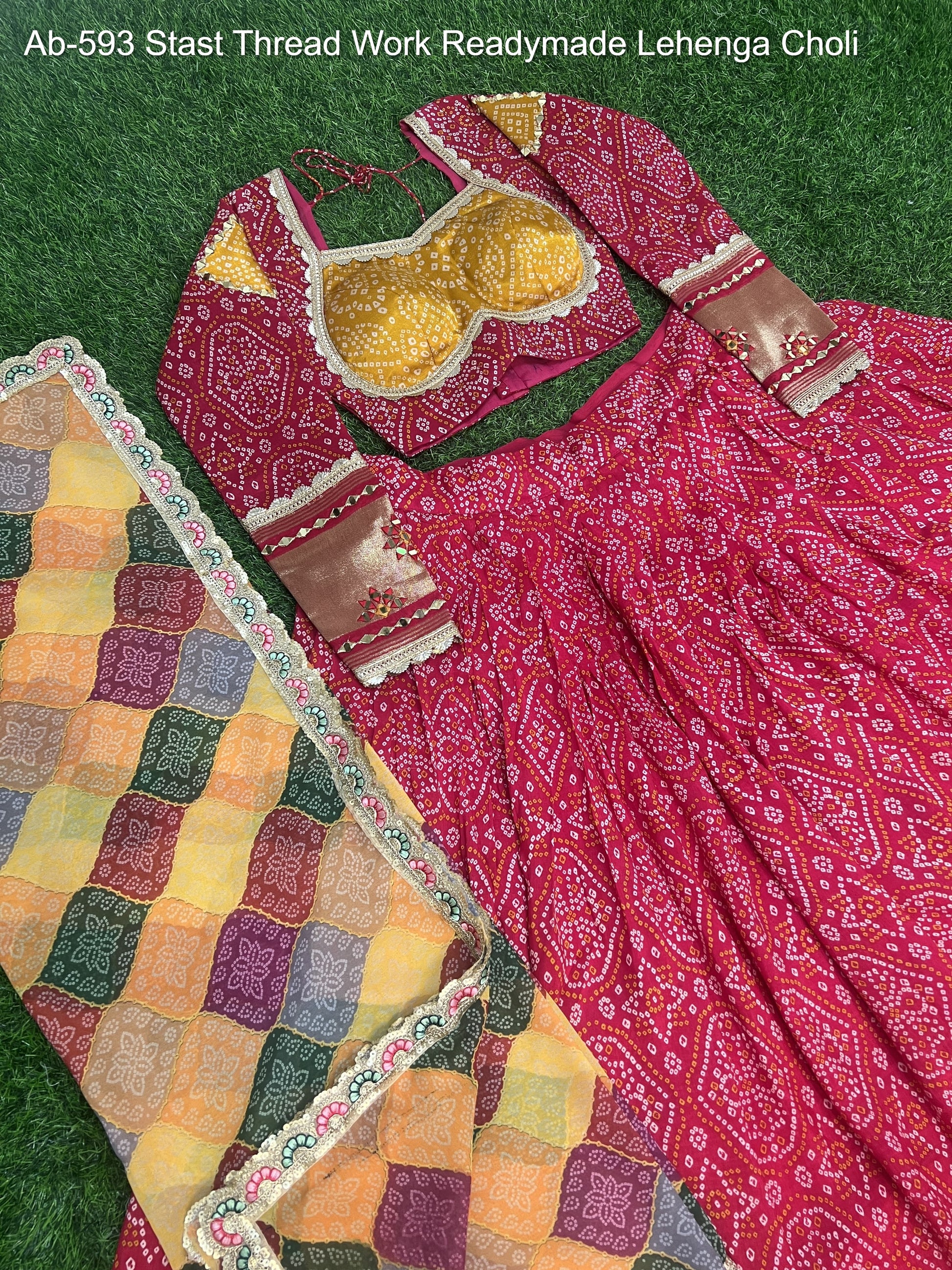 - Ab-593 Stast Thread Work Readymade Lehenga Choli Dealer Ahmedabad Surat Wholesale Gujarat India Lowest Price Best Quality Buy Purchase Shipping Kurta Salwaar Kameez Also free Cash on delivery