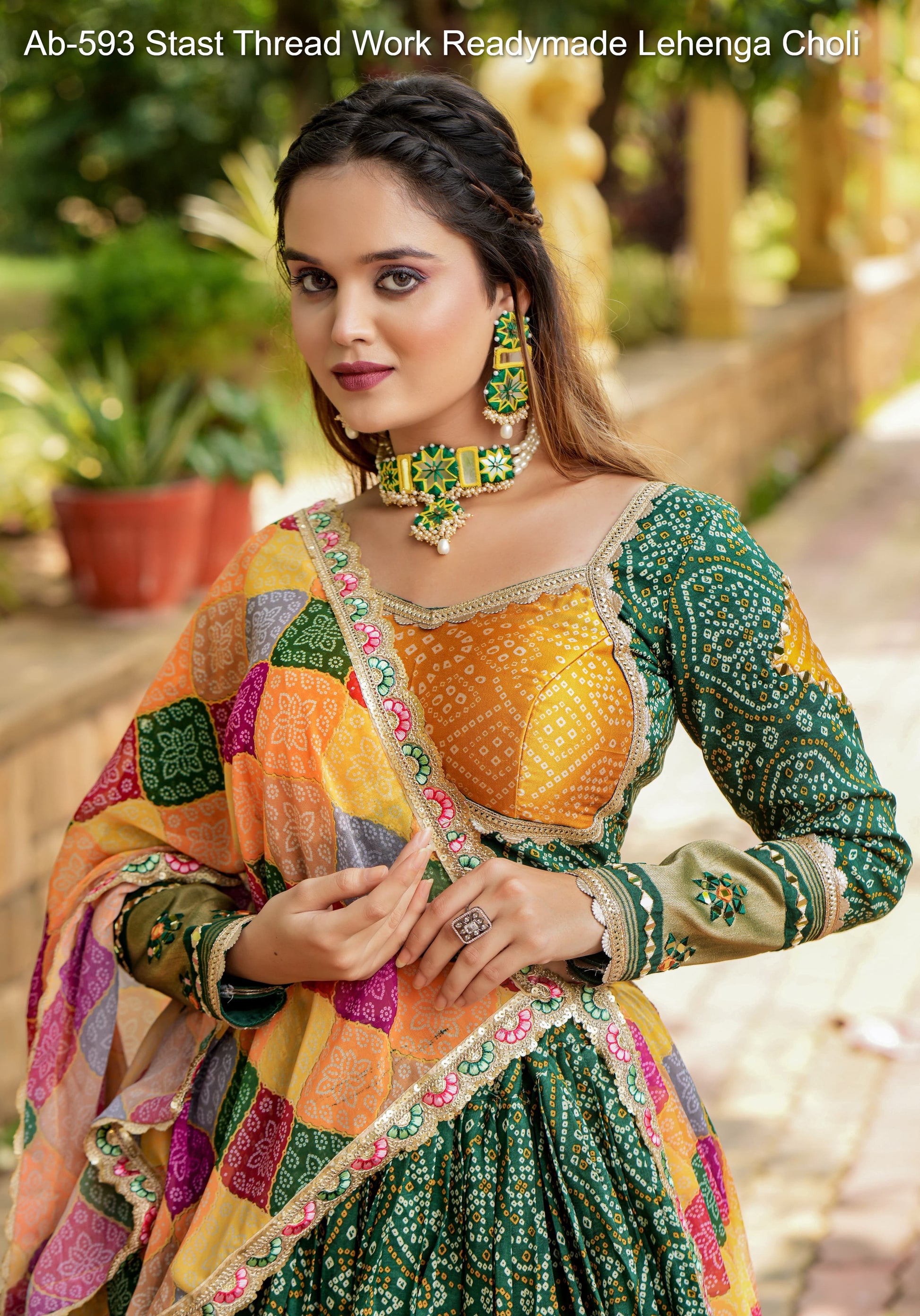 Ab-593 Stast Thread Work Readymade Lehenga Choli