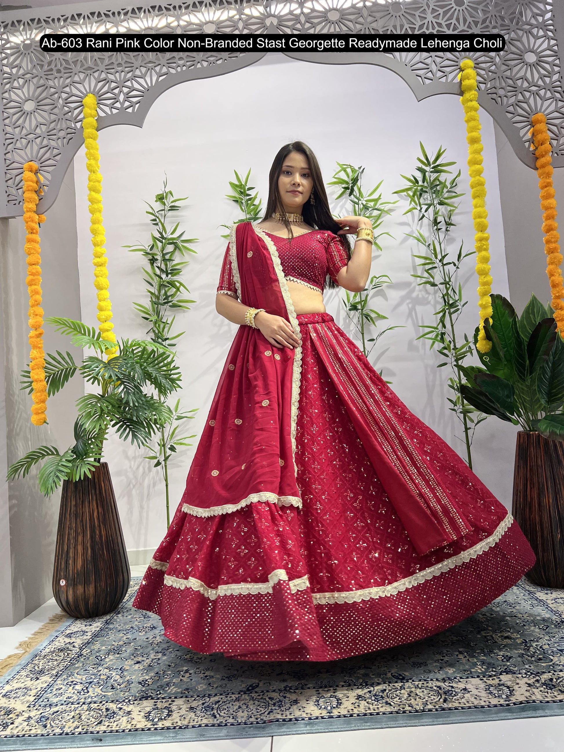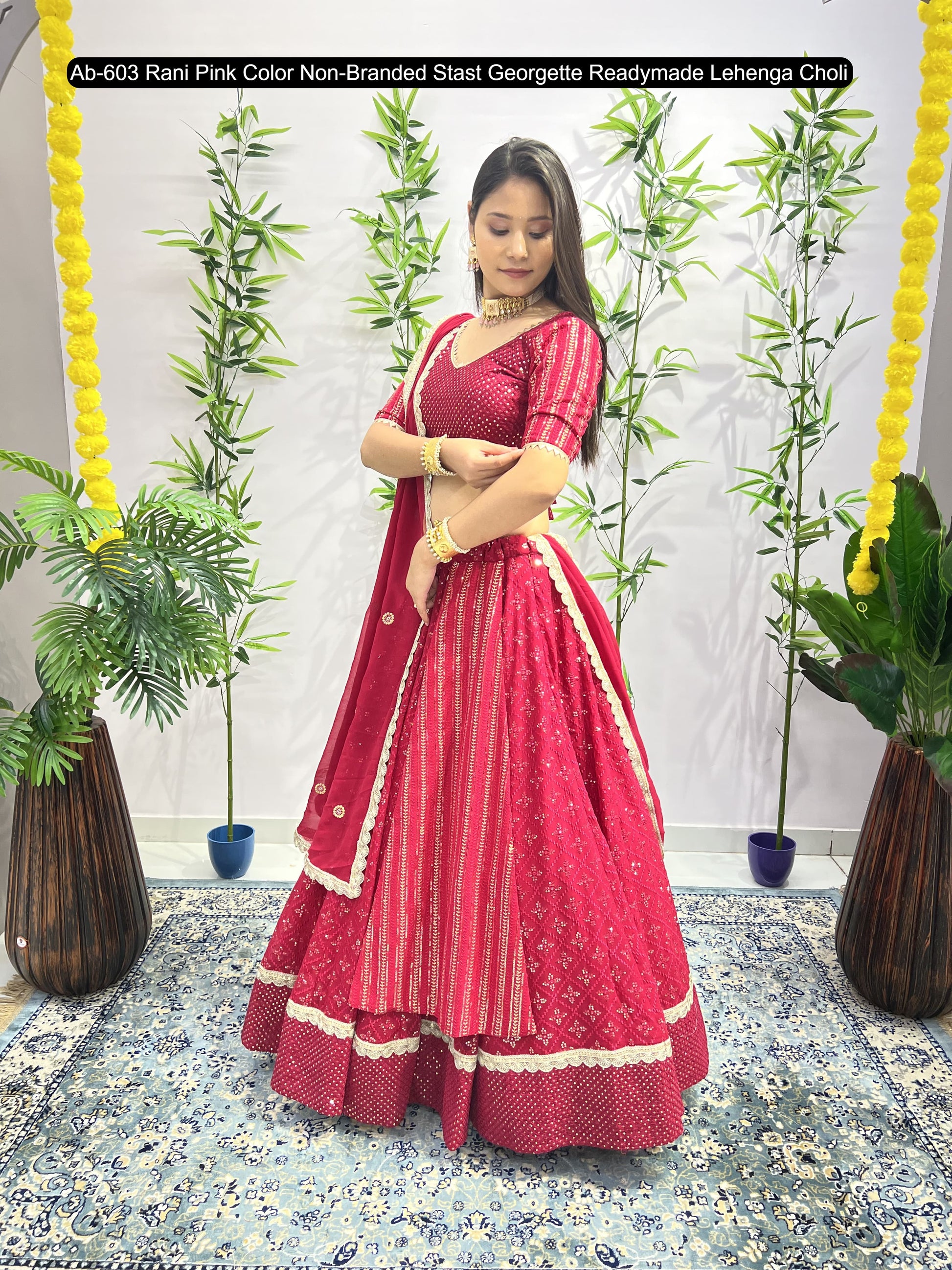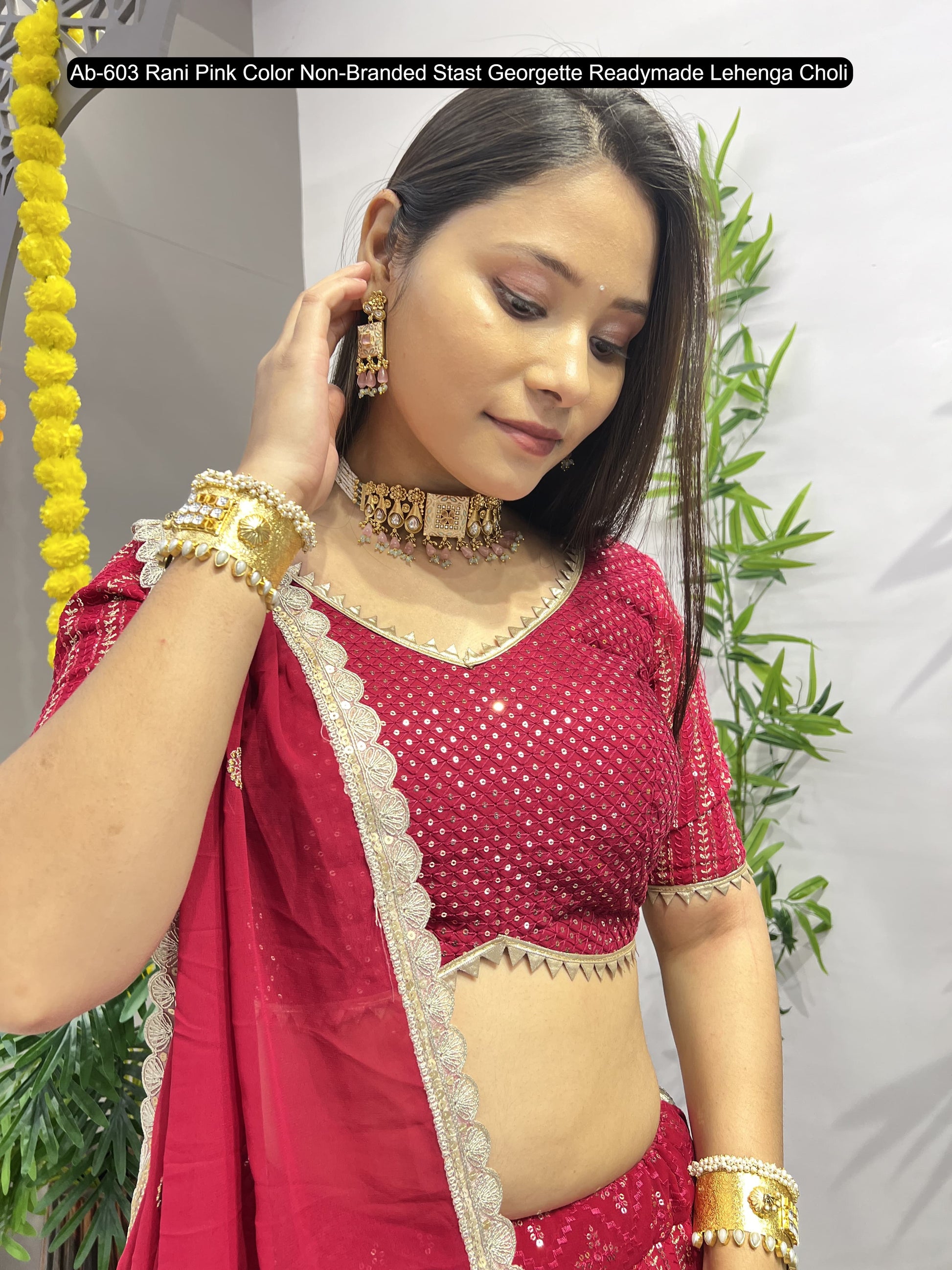 Ab-603 Rani Pink Non-Branded Stast Georgette Readymade Lehenga Choli