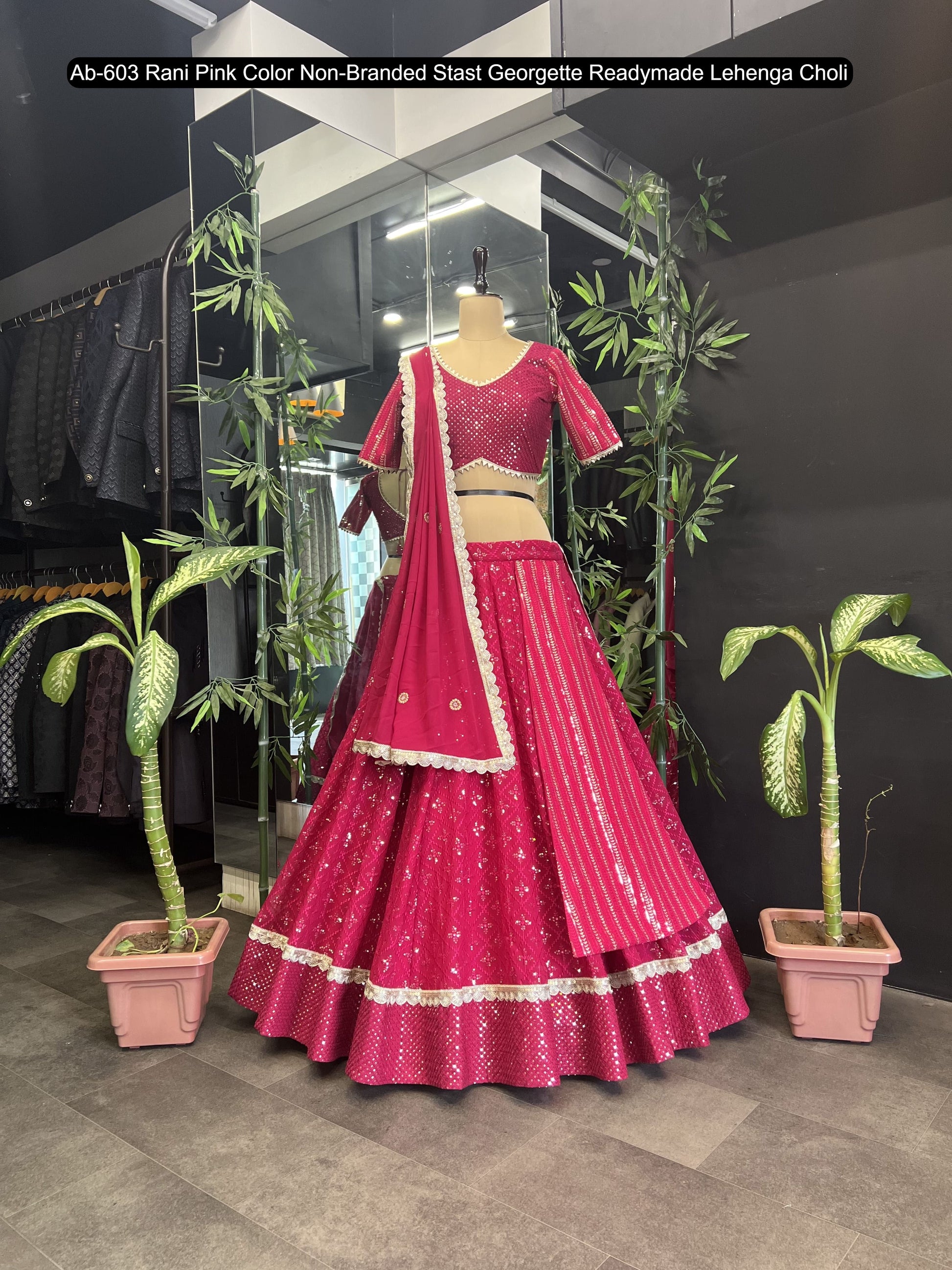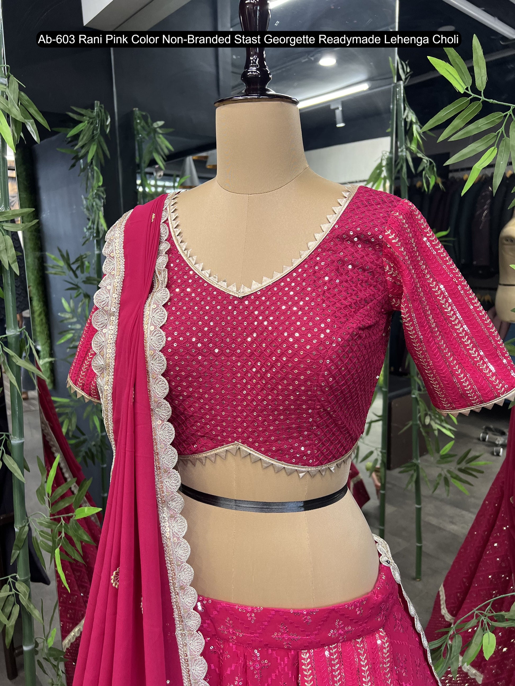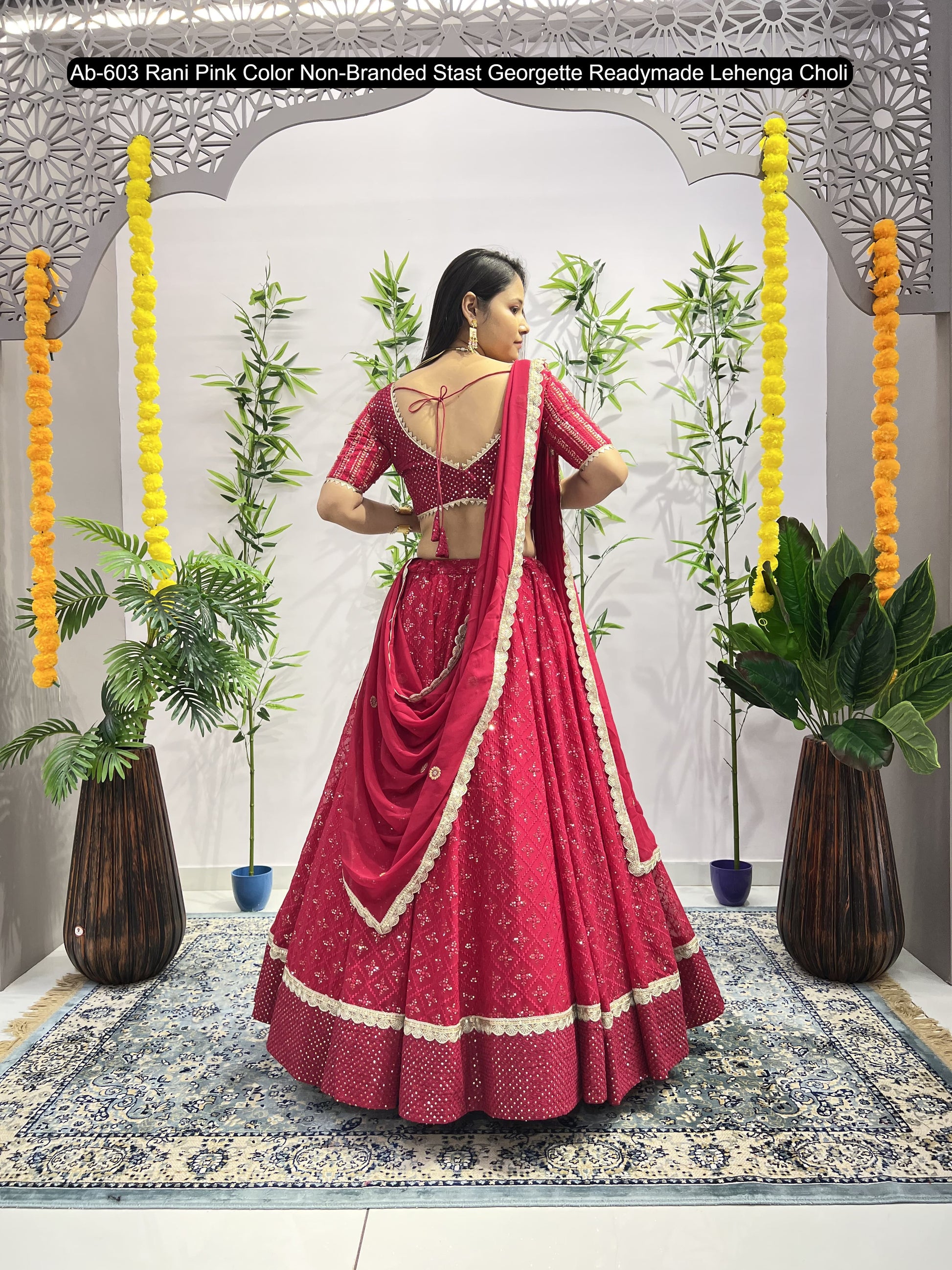 Ab-603 Rani Pink Non-Branded Stast Georgette Readymade Lehenga Choli