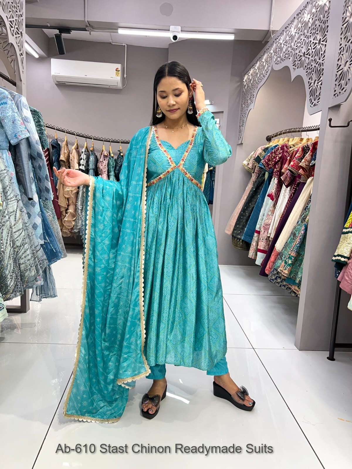 - Ab-610 Stast Chinon Readymade Suits Dealer Ahmedabad Surat Wholesale Gujarat India Lowest Price Best Quality Buy Purchase Shipping Kurta Salwaar Kameez Also free Cash on delivery