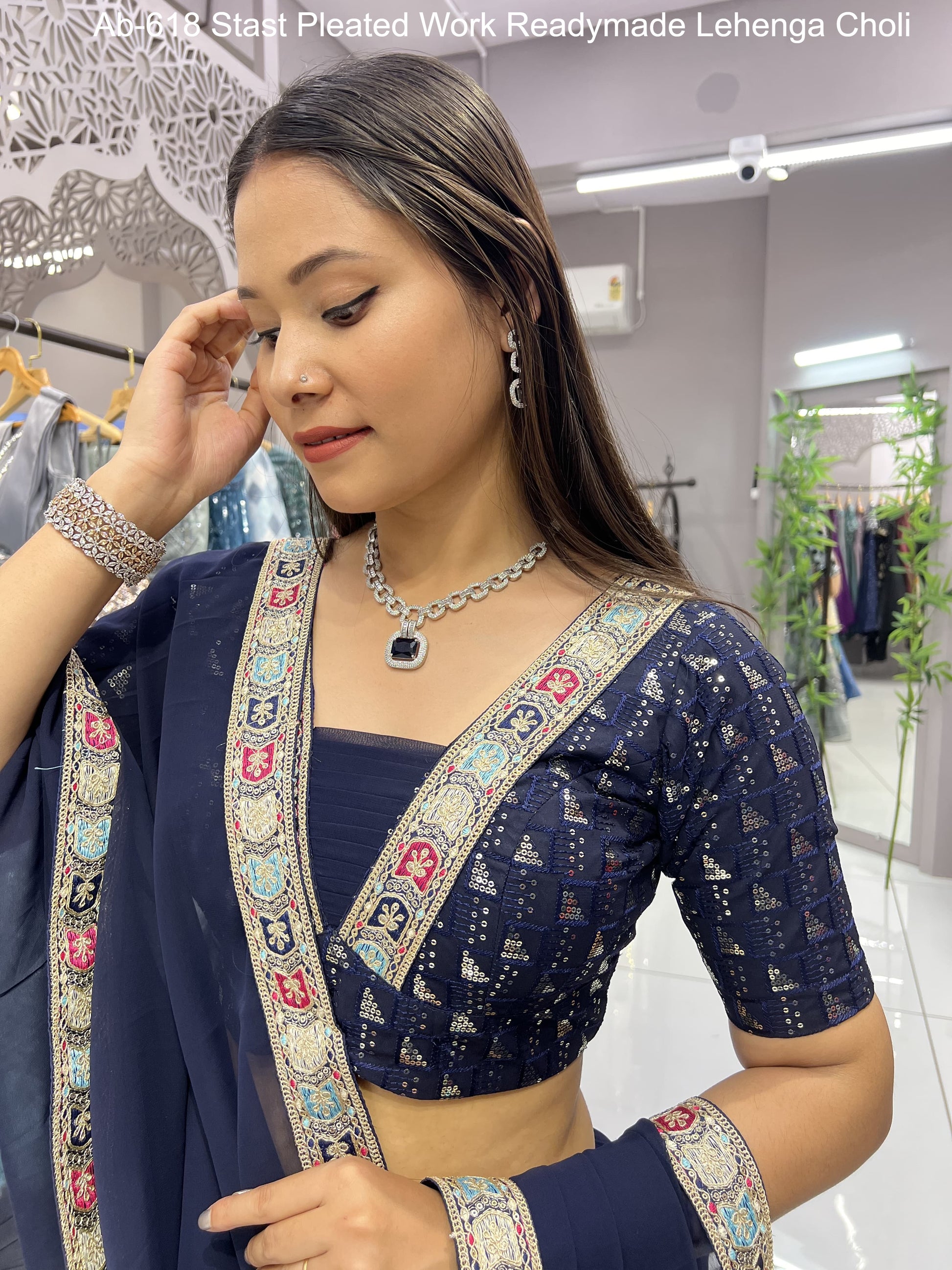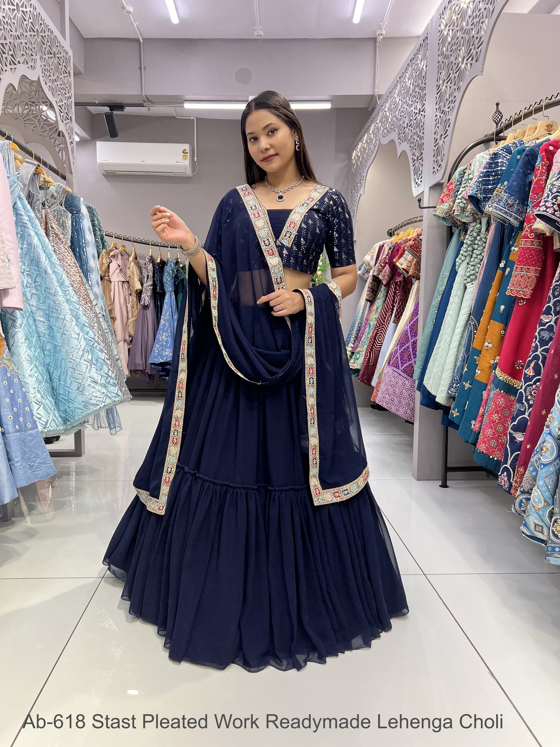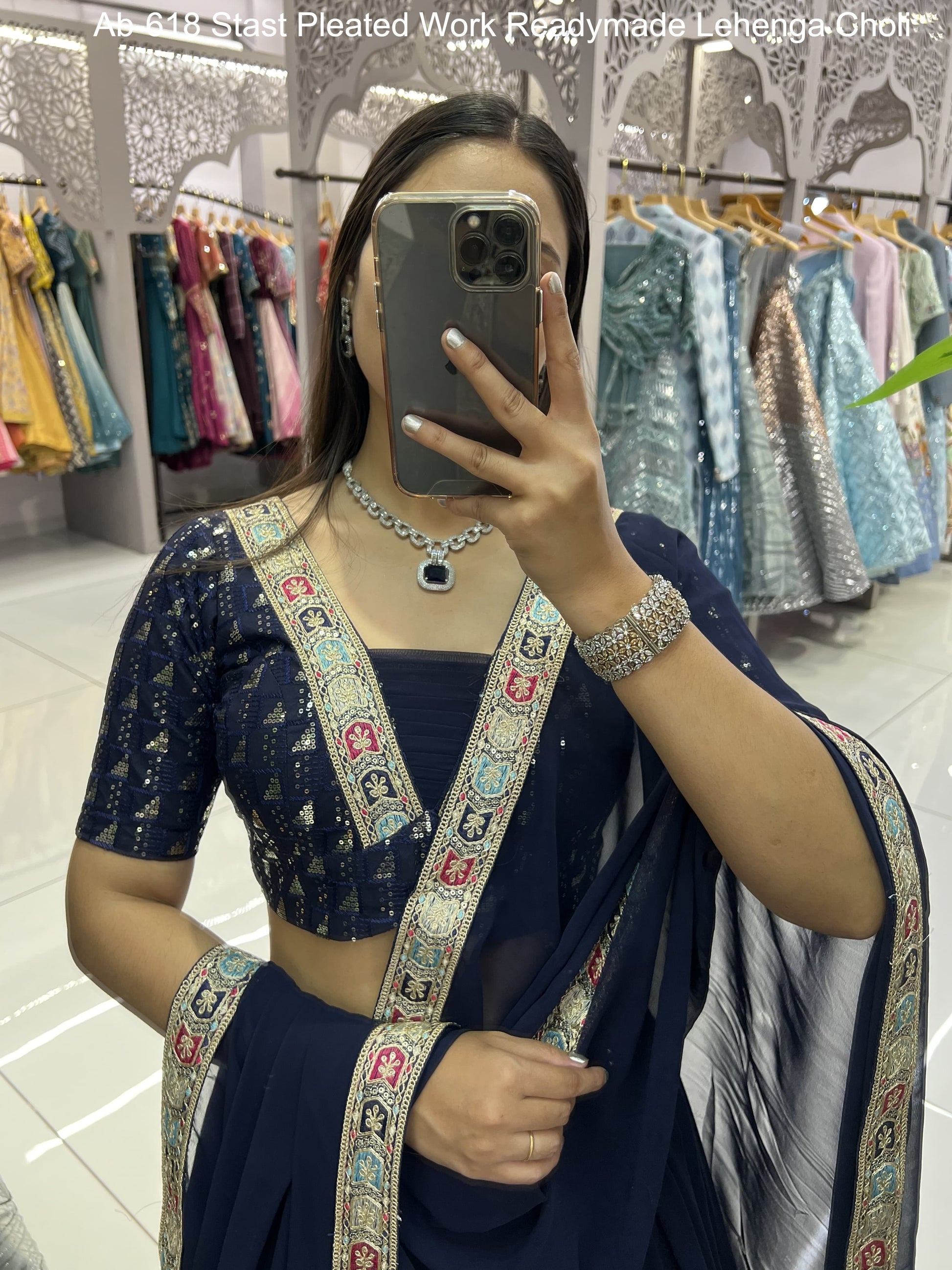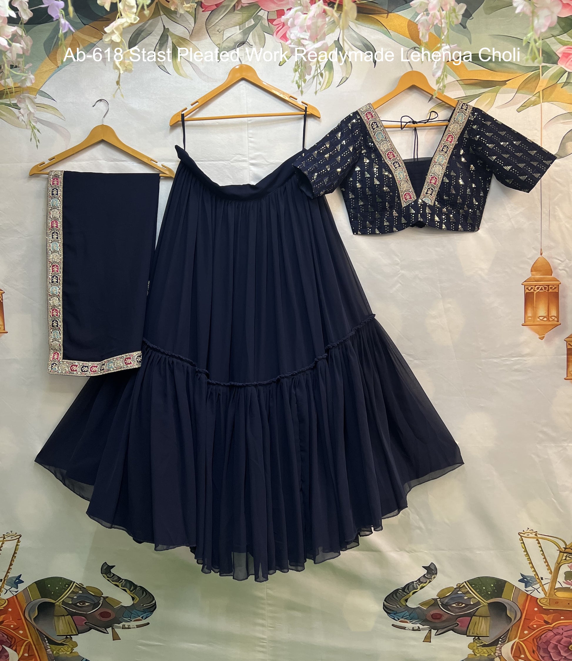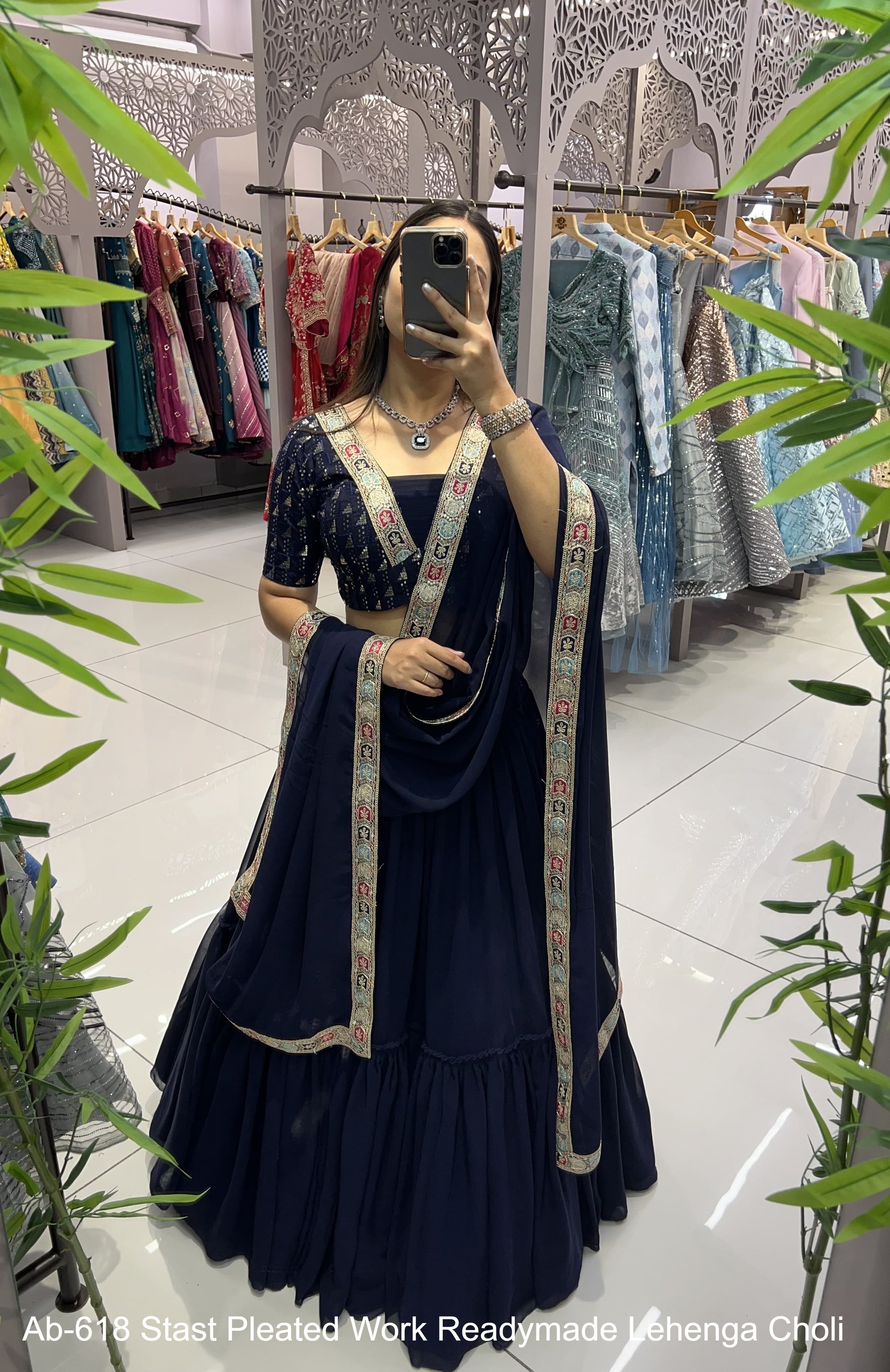 Ab-618 Stast Pleated Work Readymade Lehenga Choli