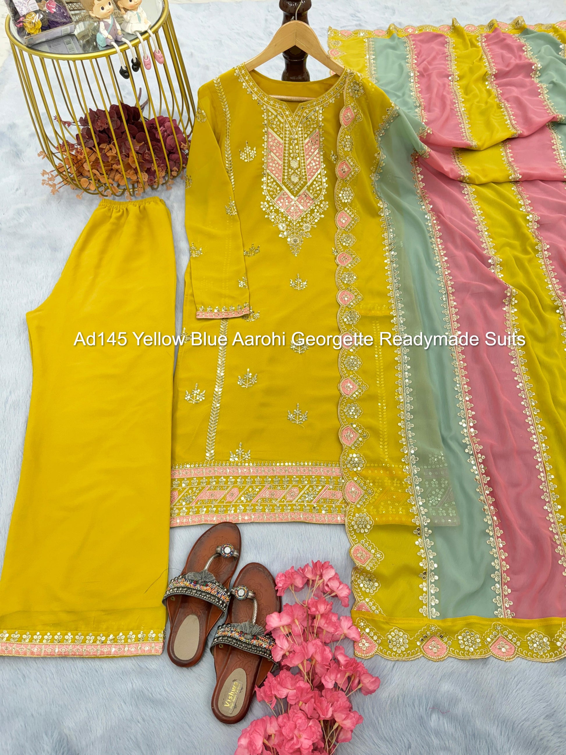 Ad145 Yellow Blue Aarohi Georgette Readymade Suits