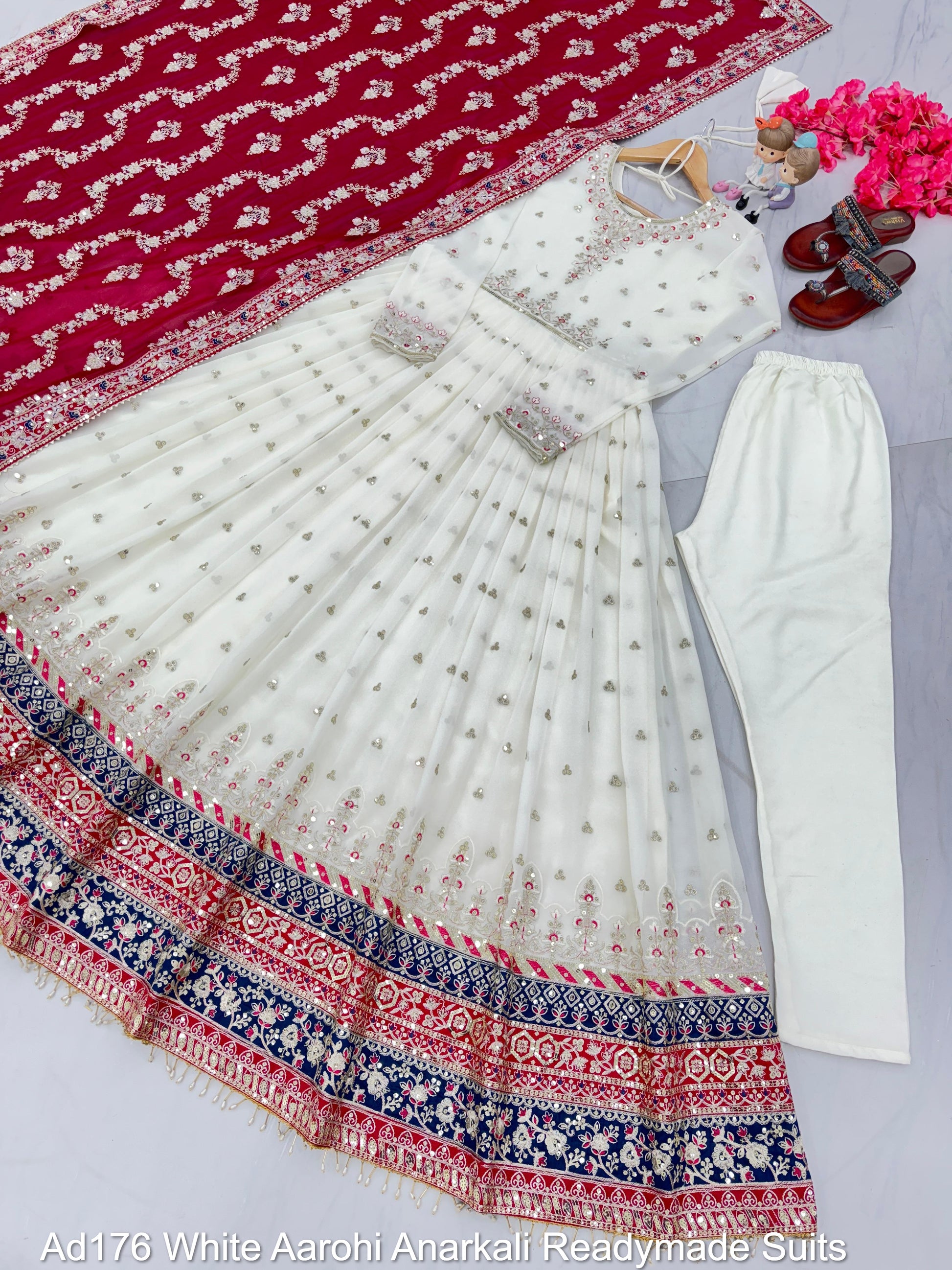 - Ad176 White Aarohi Anarkali Readymade Suits Dealer Ahmedabad Surat Wholesale Gujarat India Lowest Price Best Quality Buy Purchase Shipping Kurta Salwaar Kameez Also free Cash on delivery