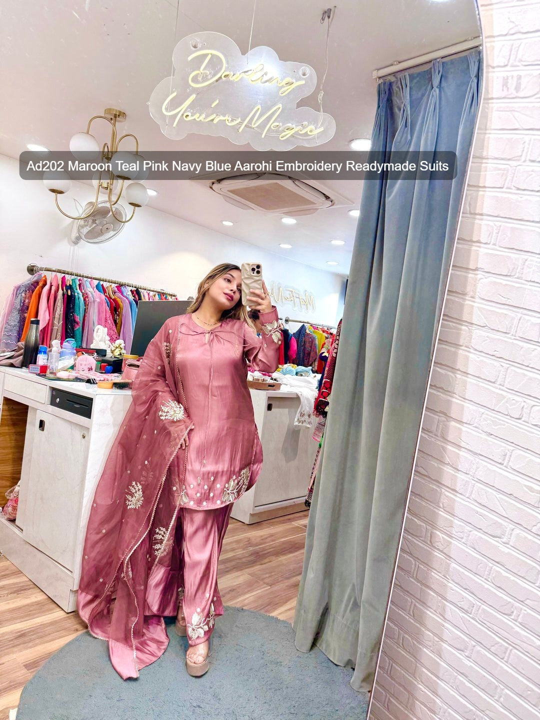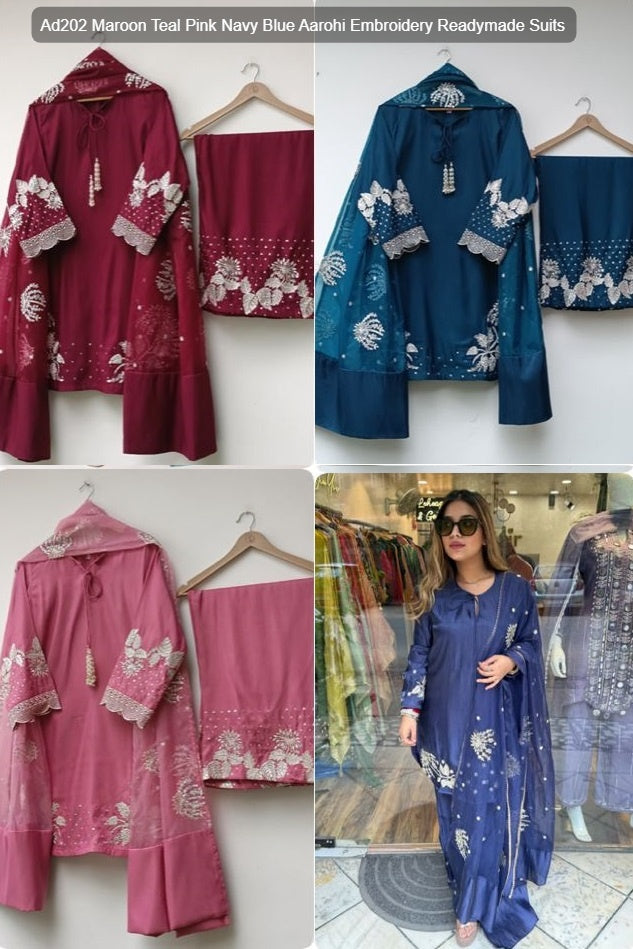 - Ad202 Maroon Teal Pink Navy Blue Aarohi Embroidery Readymade Suits Dealer Ahmedabad Surat Wholesale Gujarat India Lowest Price Best Quality Buy Purchase Shipping Kurta Salwaar Kameez Also free Cash on delivery