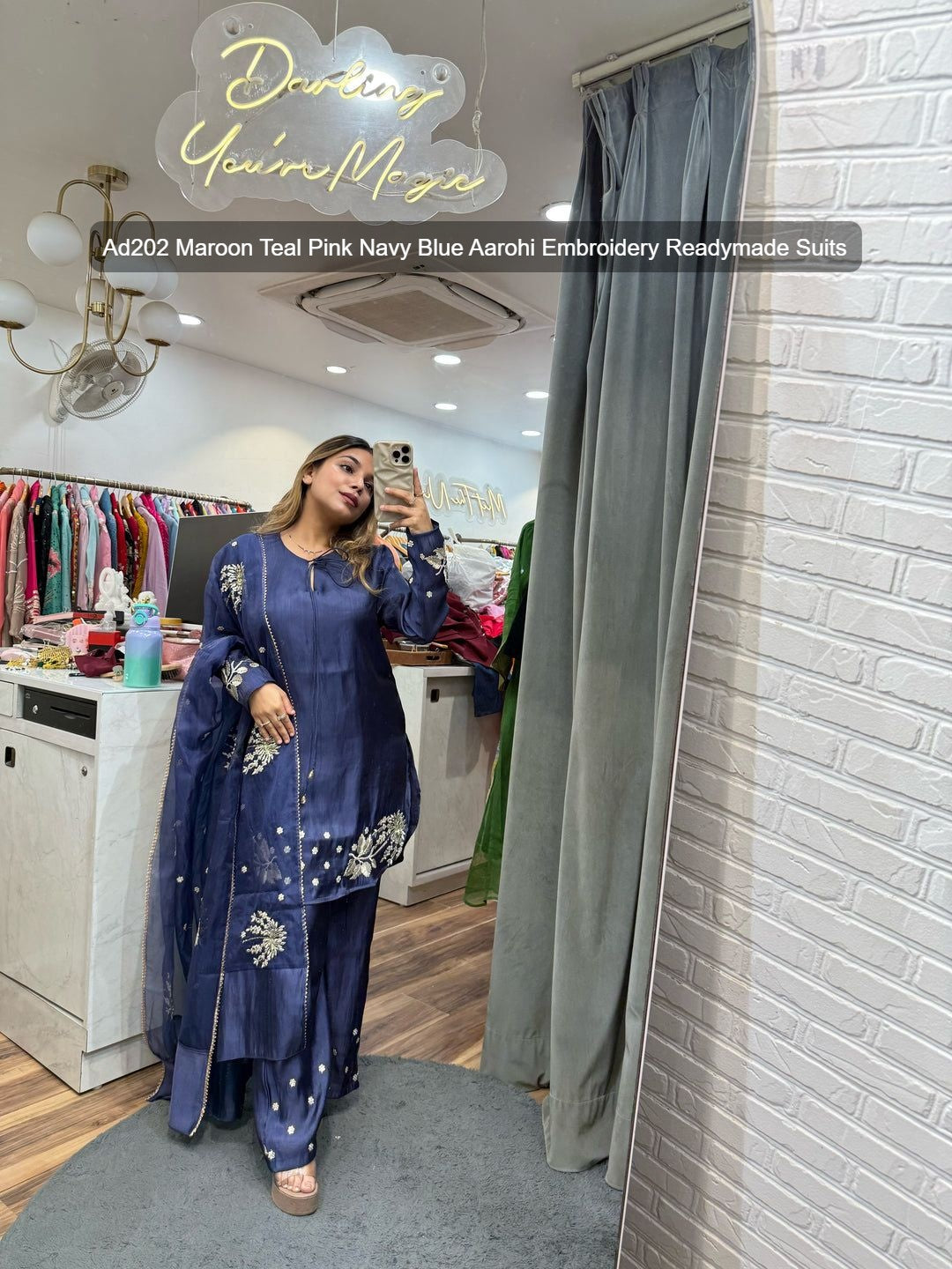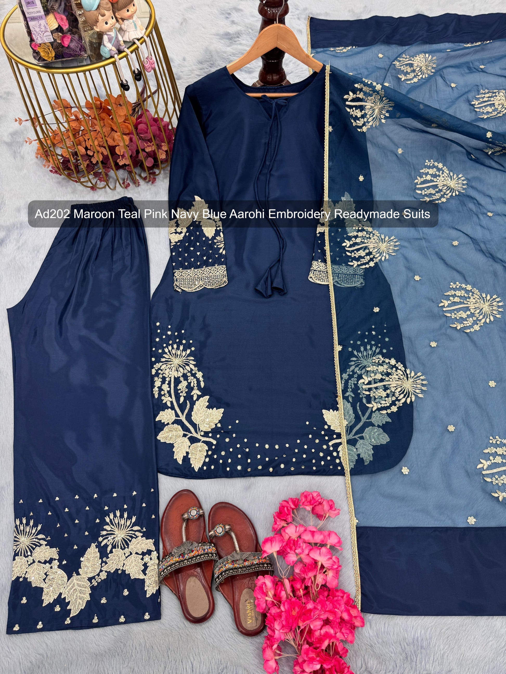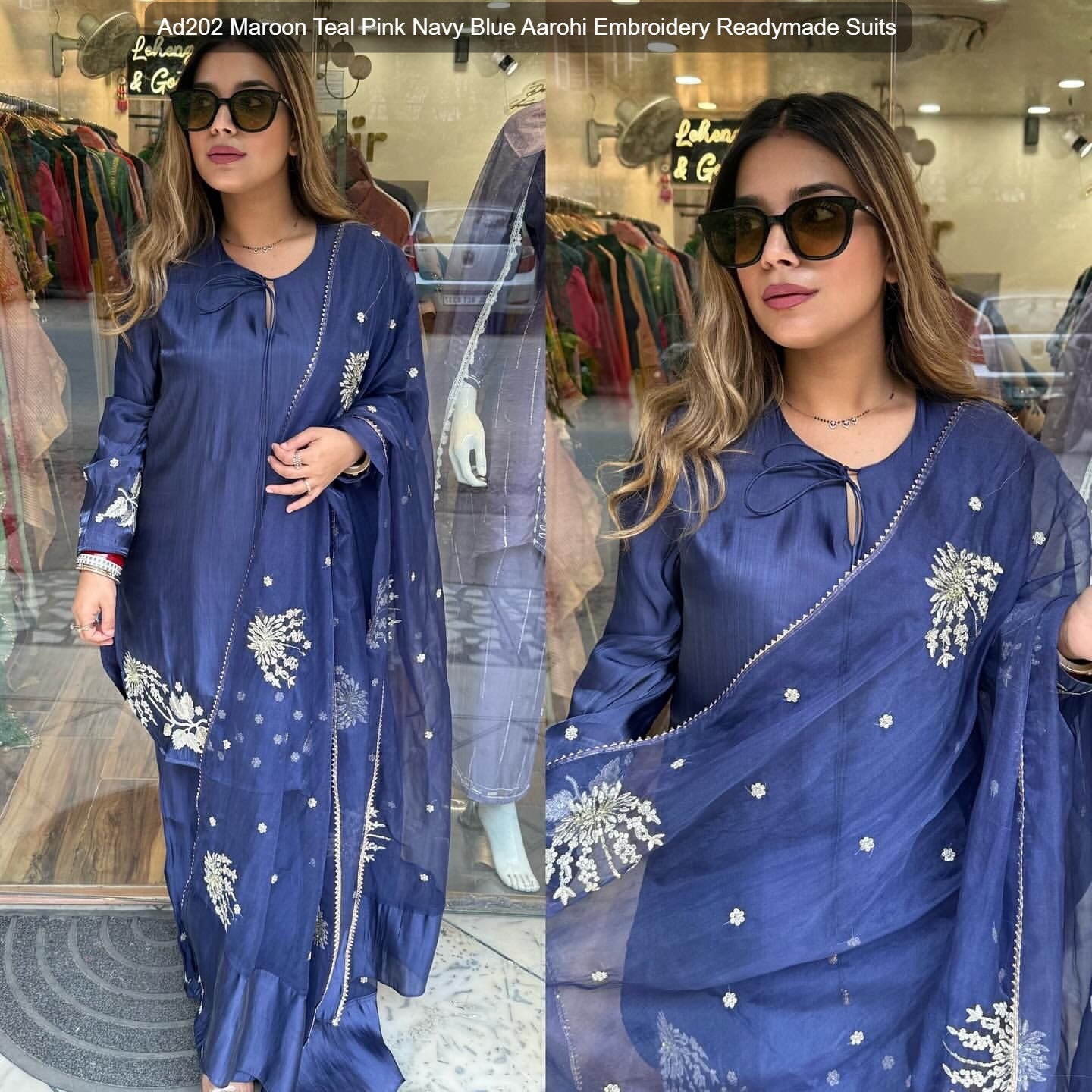 Ad202 Maroon Teal Pink Navy Blue Aarohi Embroidery Readymade Suits