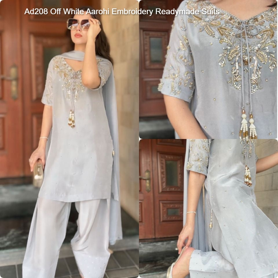 Ad208 Off White Aarohi Embroidery Readymade Suits