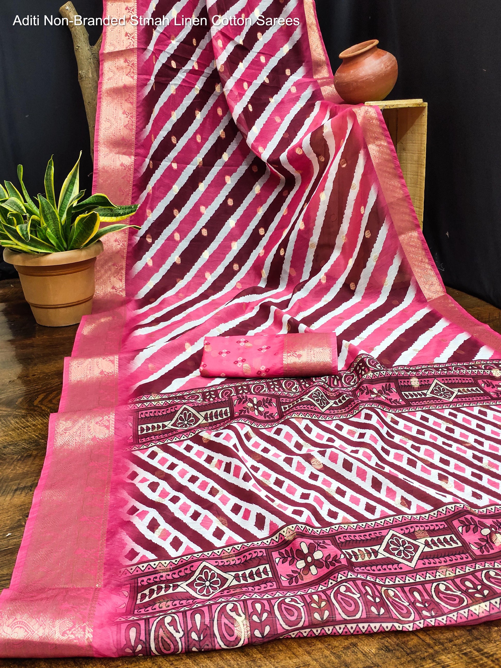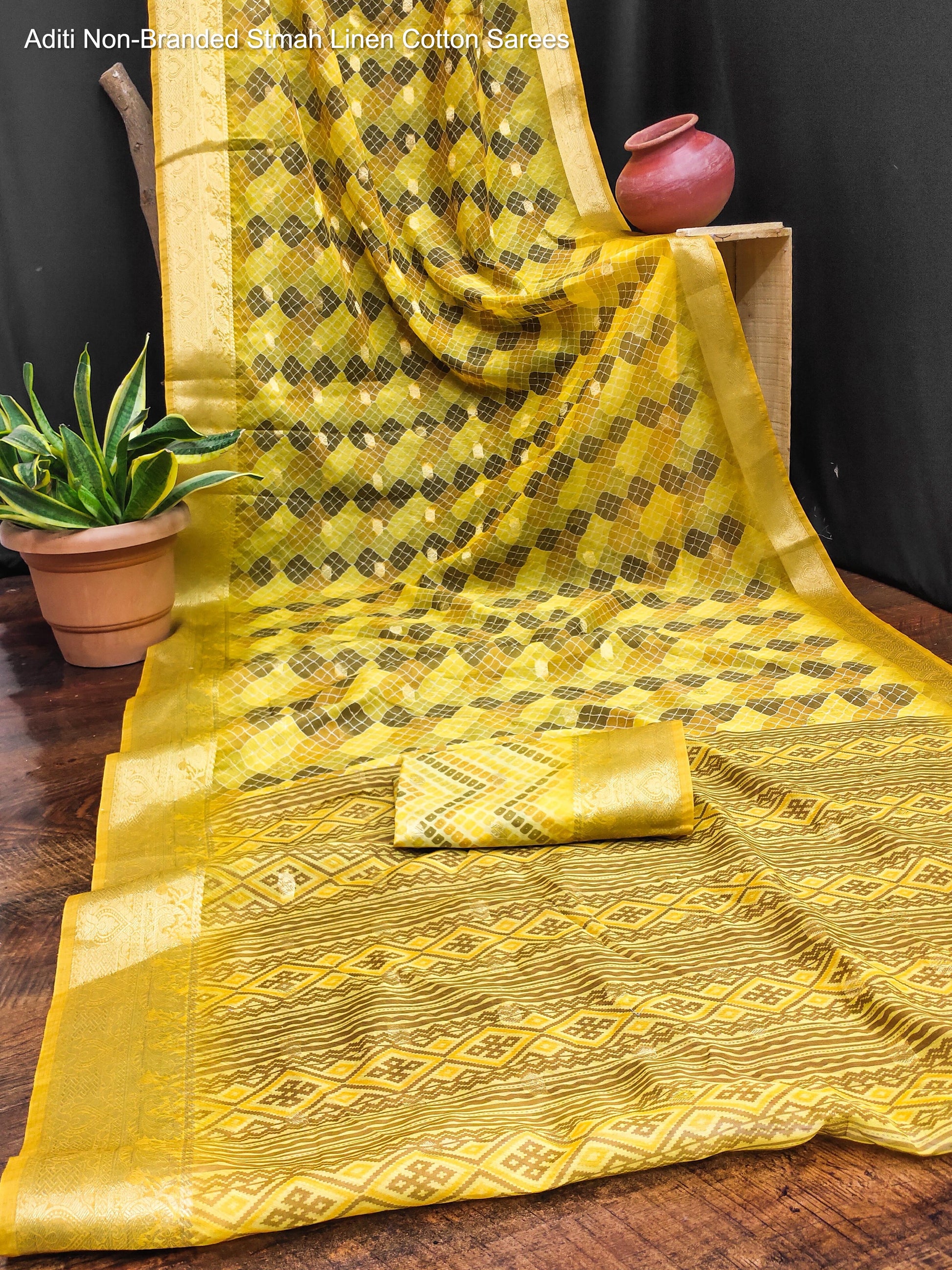 Aditi Non-Branded Stmah Linen Cotton Sarees