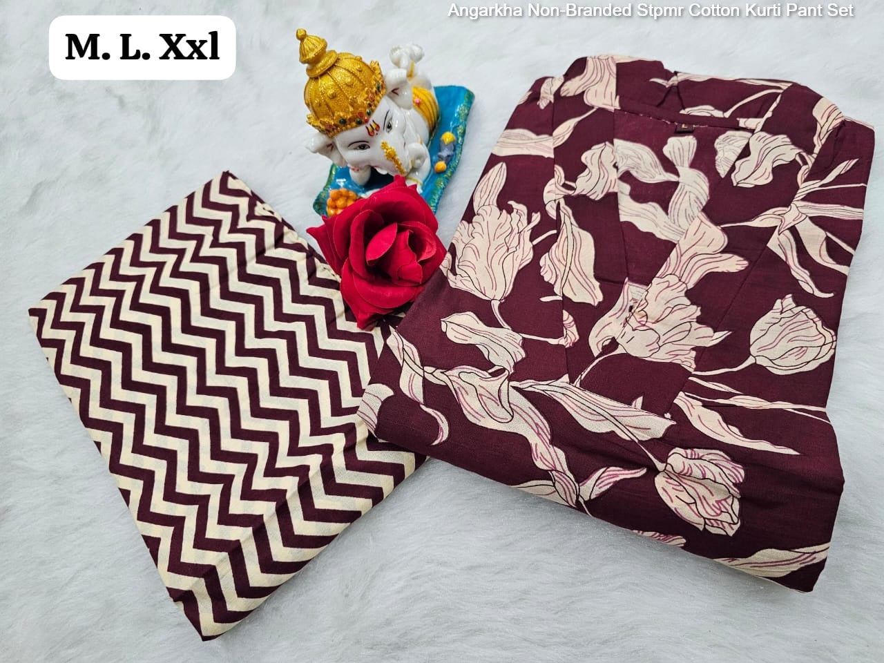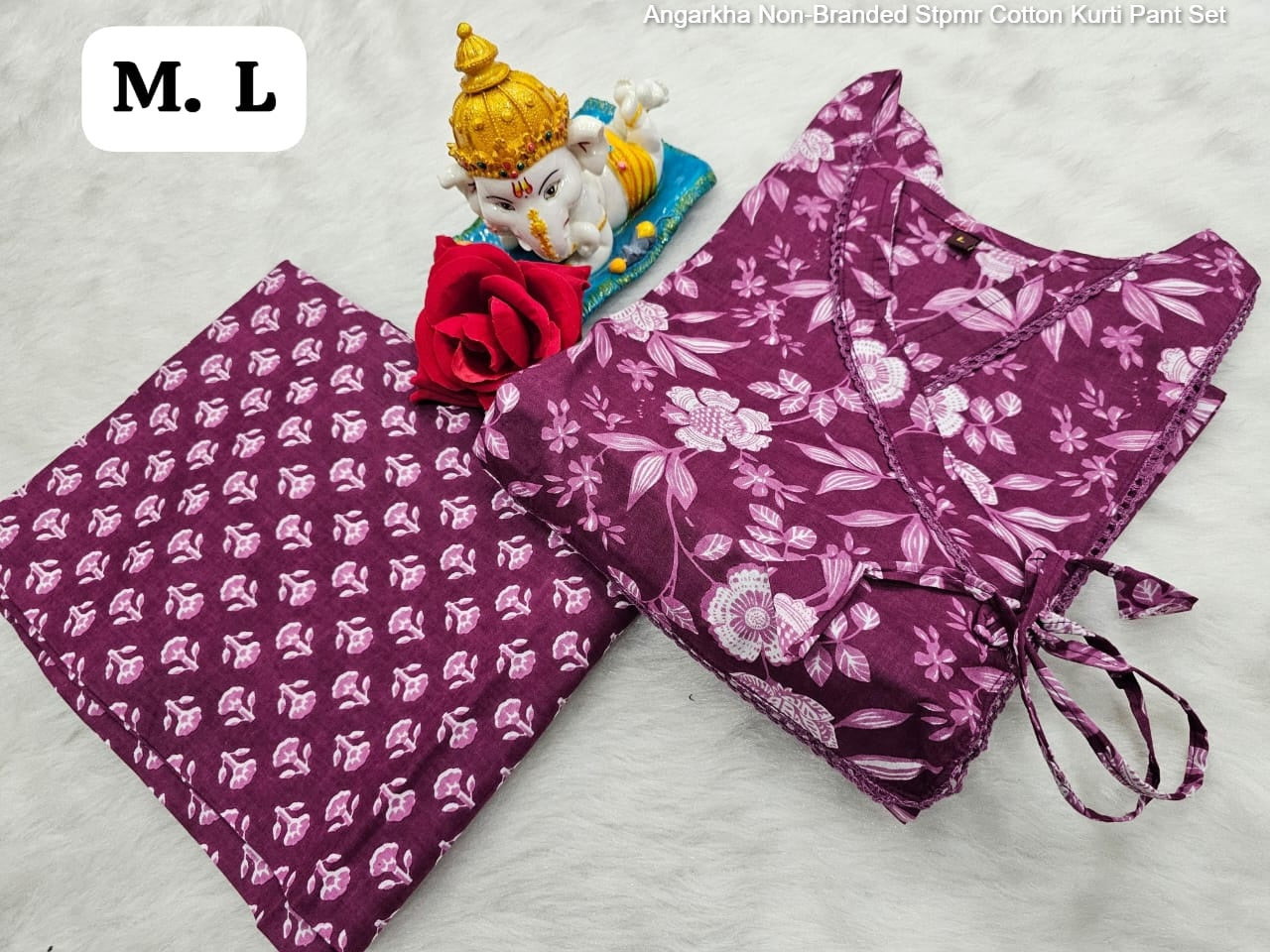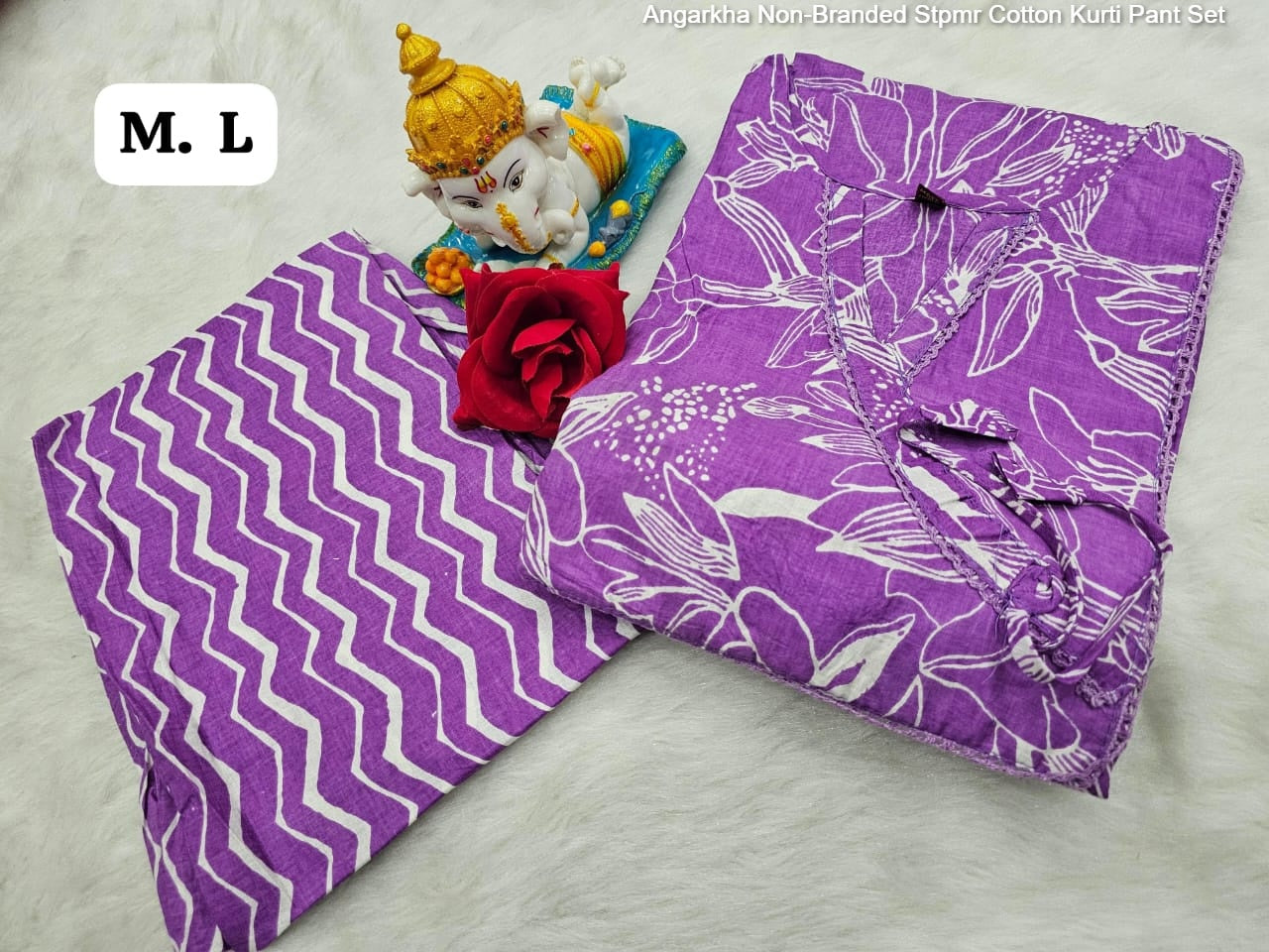 Angarkha Non-Branded Stpmr Cotton Kurti Pant Set