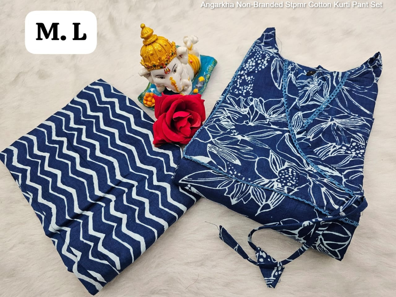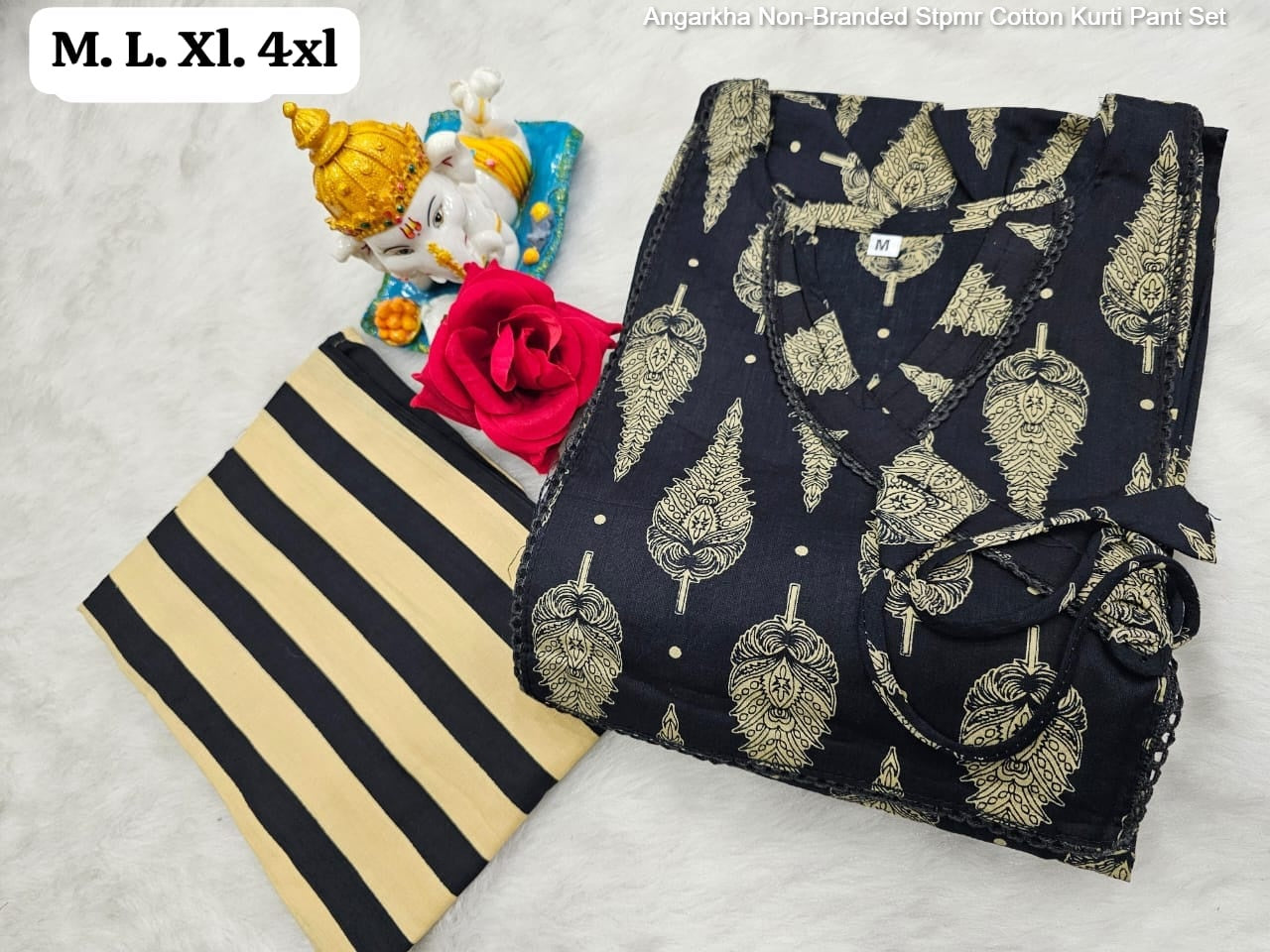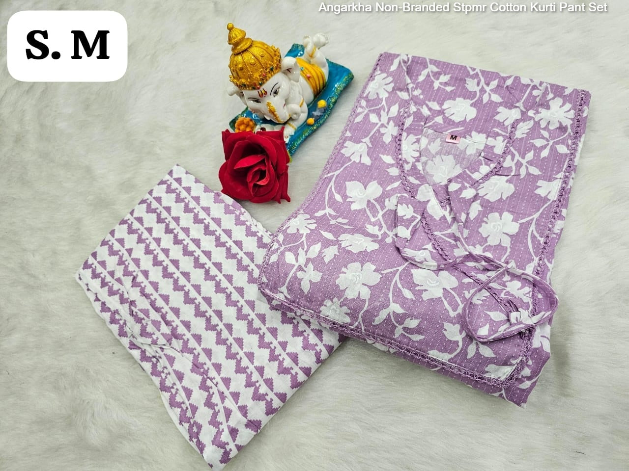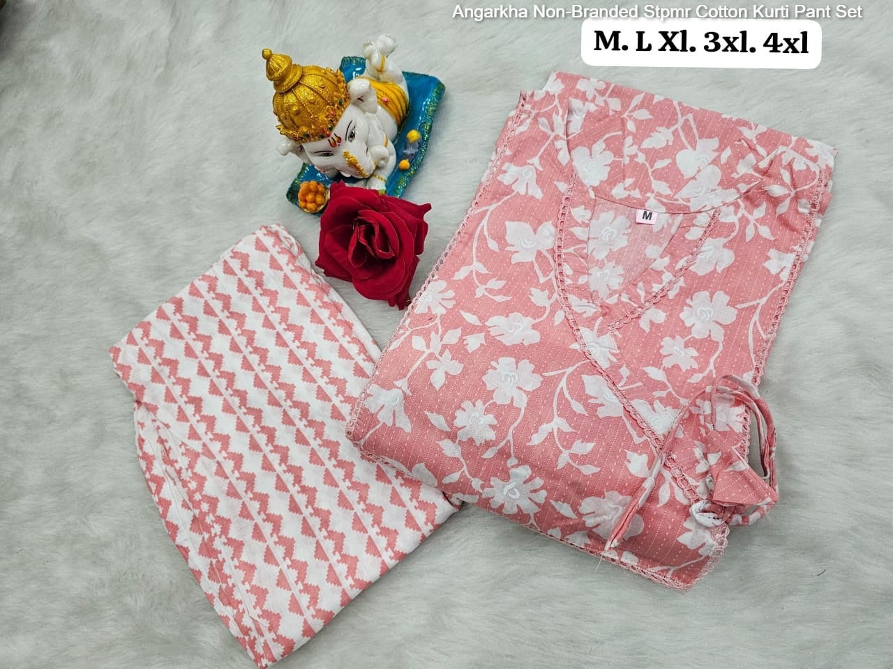 Angarkha Non-Branded Stpmr Cotton Kurti Pant Set