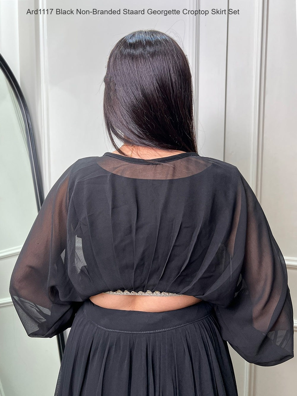 Ard1117 Black Non-Branded Staard Georgette Croptop Skirt Set