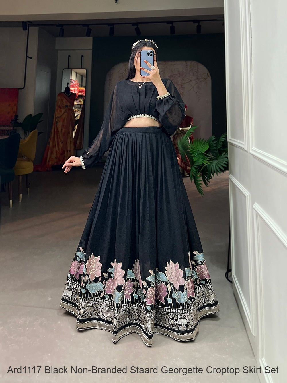 - Ard1117 Black Non-Branded Staard Georgette Croptop Skirt Set Dealer Ahmedabad Surat Wholesale Gujarat India Lowest Price Best Quality Buy Purchase Shipping Kurta Salwaar Kameez Also free Cash on delivery