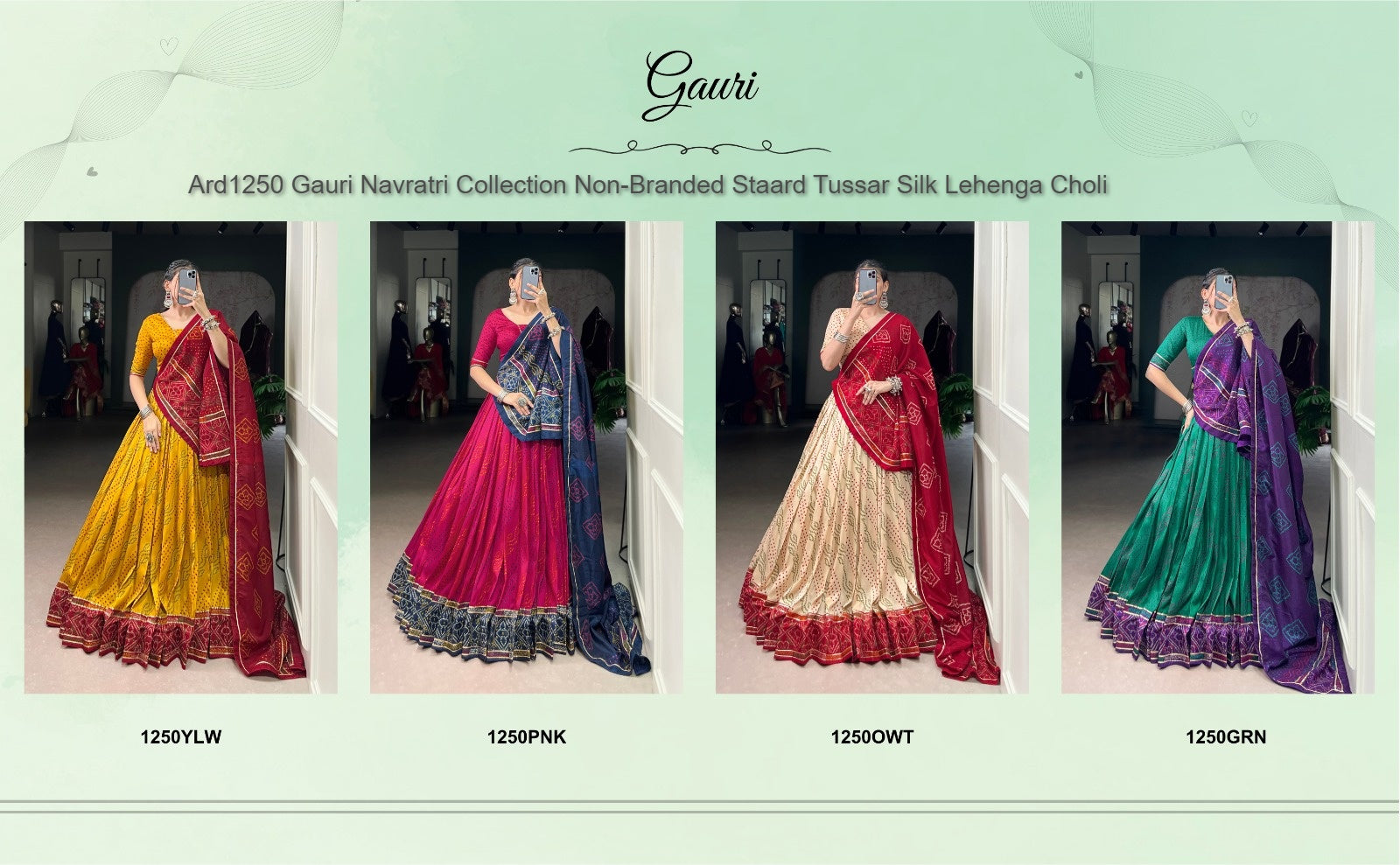 - Ard1250 Gauri Navratri Collection Non-Branded Staard Tussar Silk Lehenga Choli Dealer Ahmedabad Surat Wholesale Gujarat India Lowest Price Best Quality Buy Purchase Shipping Kurta Salwaar Kameez Also free Cash on delivery