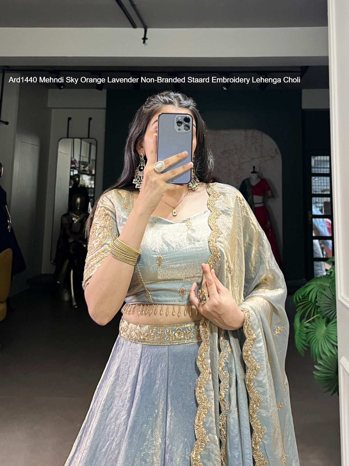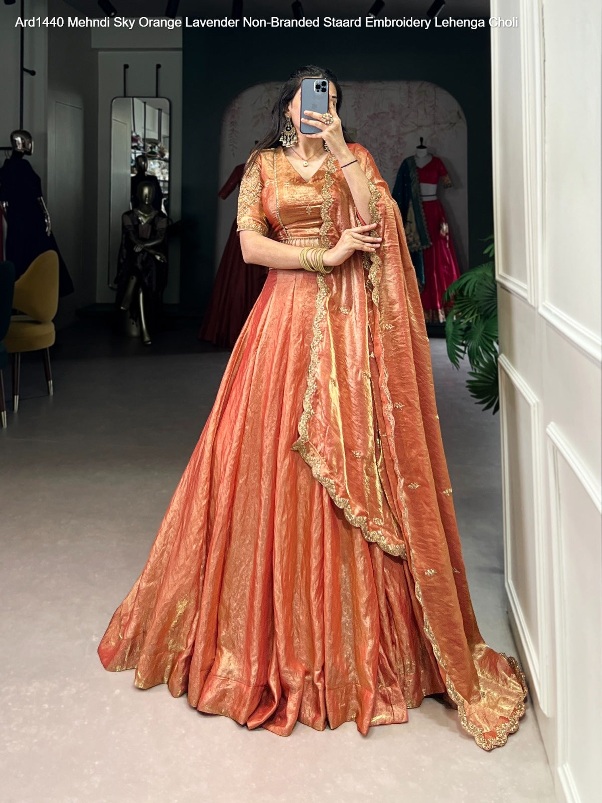 Ard1440 Mehndi Sky Orange Lavender Non-Branded Staard Embroidery Lehenga Choli