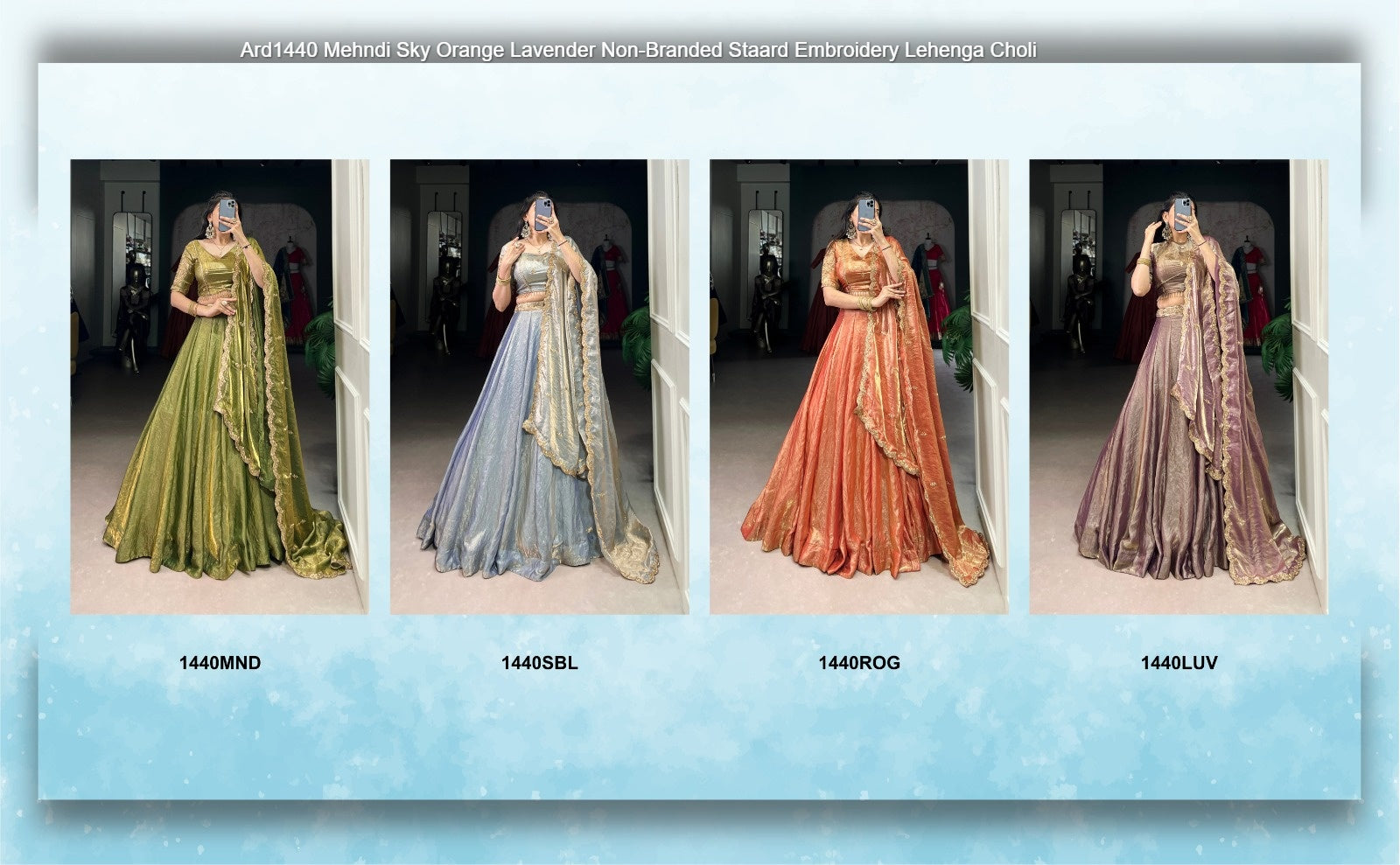 - Ard1440 Mehndi Sky Orange Lavender Non-Branded Staard Embroidery Lehenga Choli Dealer Ahmedabad Surat Wholesale Gujarat India Lowest Price Best Quality Buy Purchase Shipping Kurta Salwaar Kameez Also free Cash on delivery