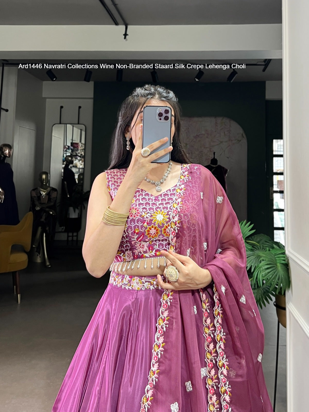 Ard1446 Navratri Collections Wine Non-Branded Staard Silk Crepe Lehenga Choli